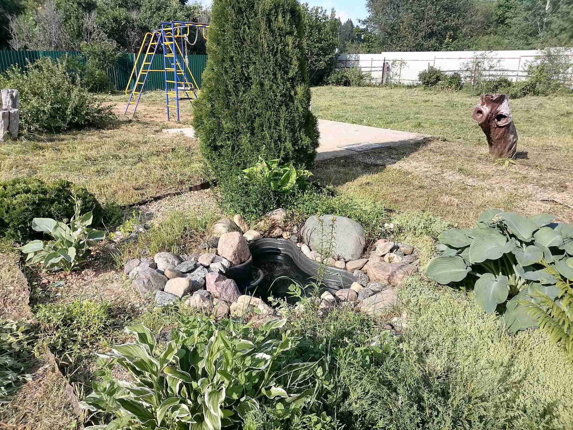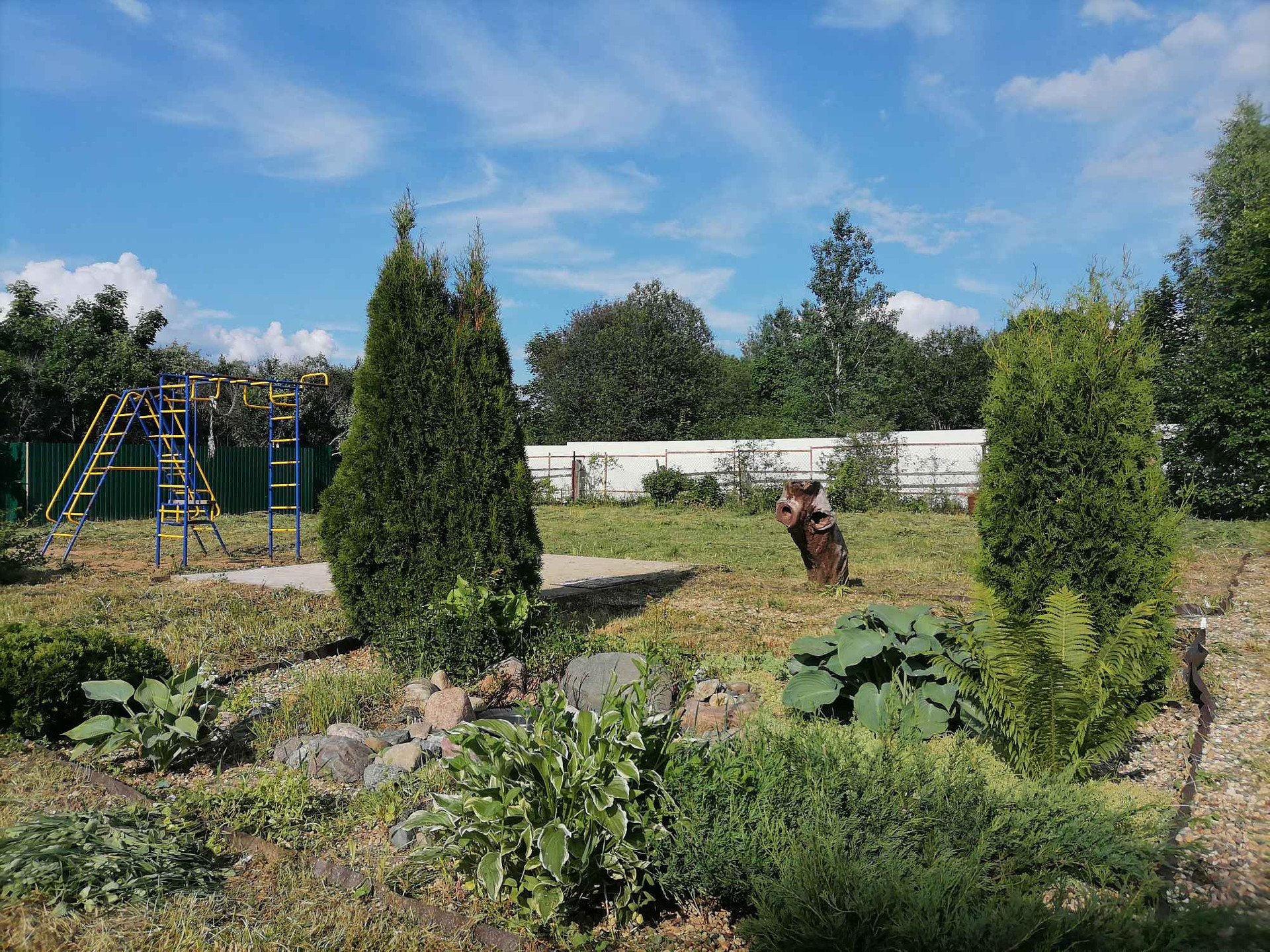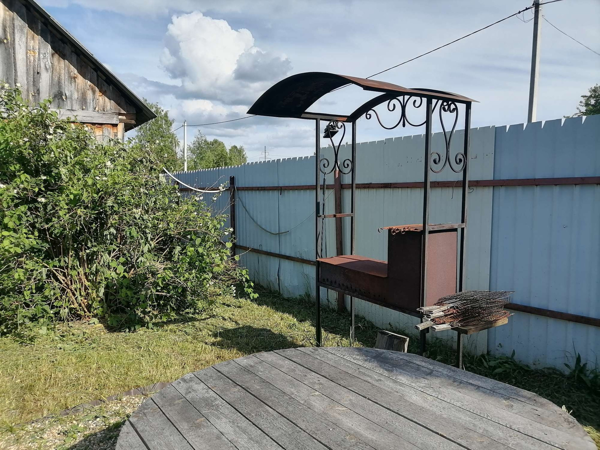 Также есть мангал, место под беседку и детская площадка.