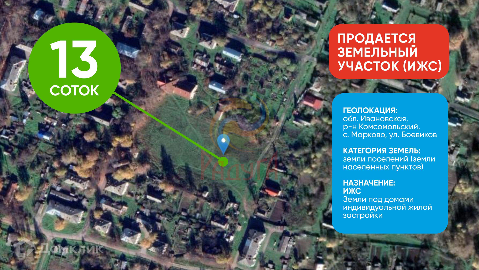 ЭКСКЛЮЗИВ ОТ АН РАДУГА: ЗЕМЕЛЬНЫЙ УЧАСТОК ПОД ИЖС 13 СОТОК!