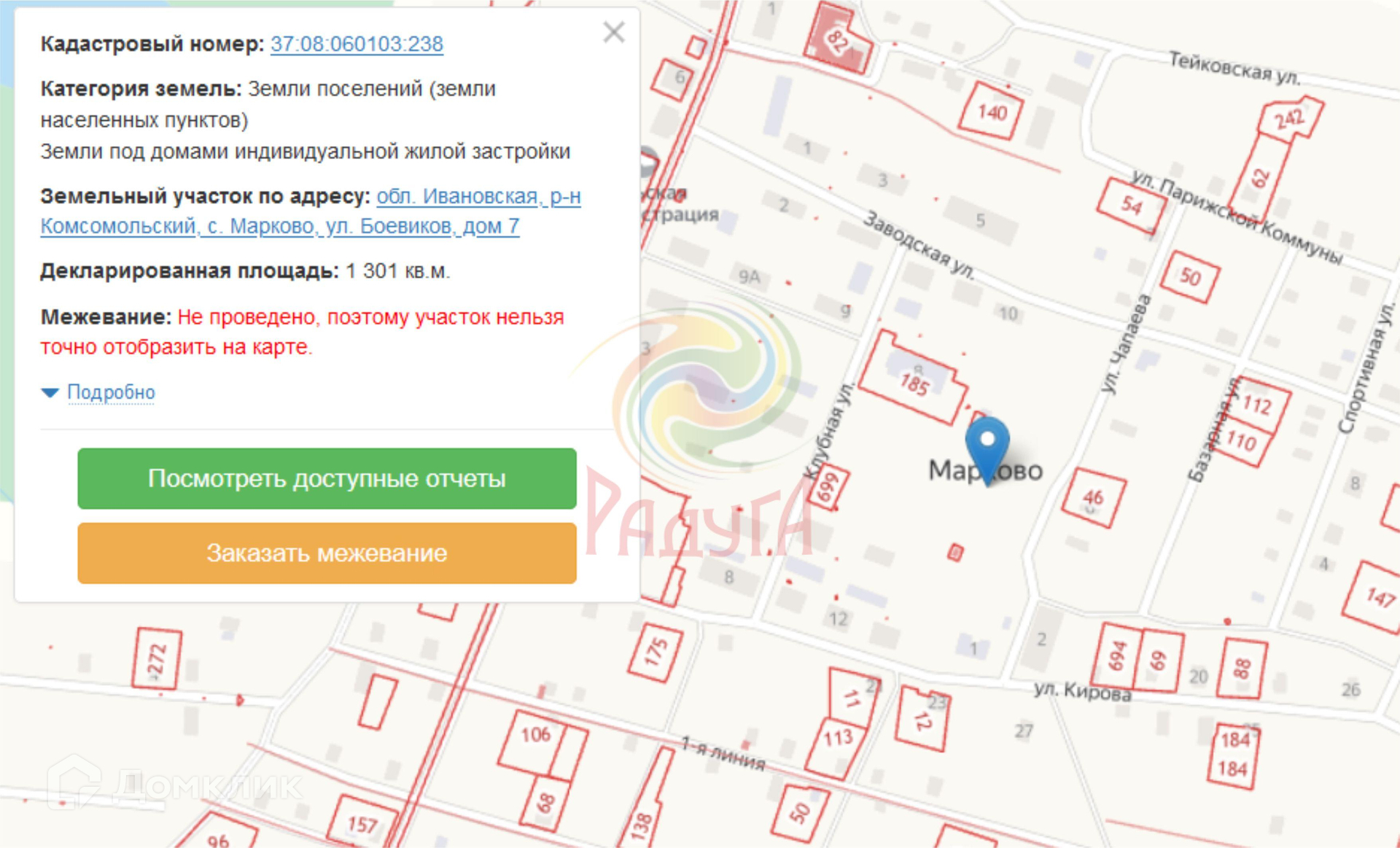 • Участок на кадастровом учете и нанесен на кадастровую карту