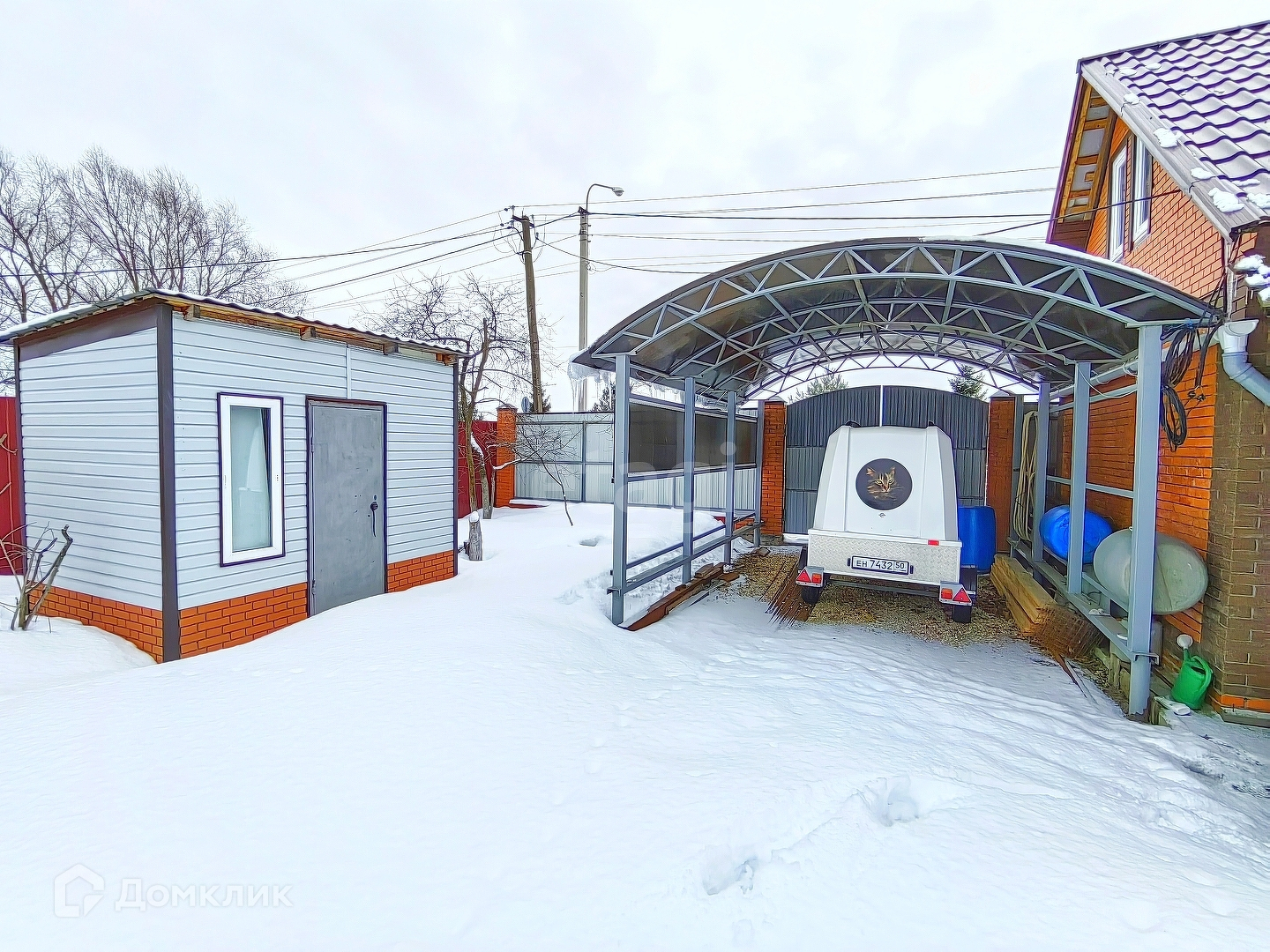 Сделан красивый качественный забор с калиткой и распашными воротами, навес под авто из металлоконструкции , залита площадка из бетона для машины перед воротами, имеется сарай. В конце участка готовый фундамент под баню 3 на 4, березовая роща, искусственный пруд . Участок ровный обработанный, сделан ландшафт.