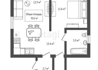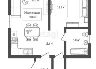 Общая площадь: 90 м2