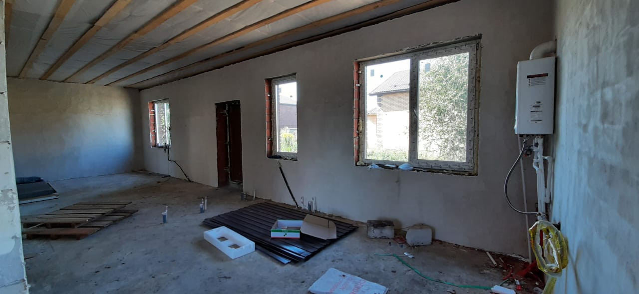в доме будет предчистовая отделка (стяжка пола, штукатурка, радиаторы)