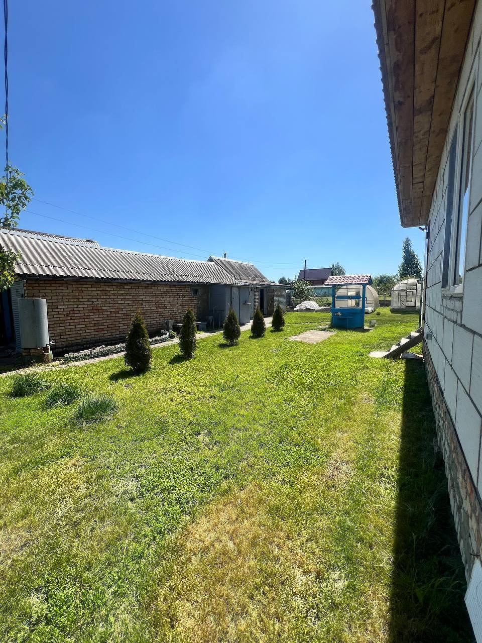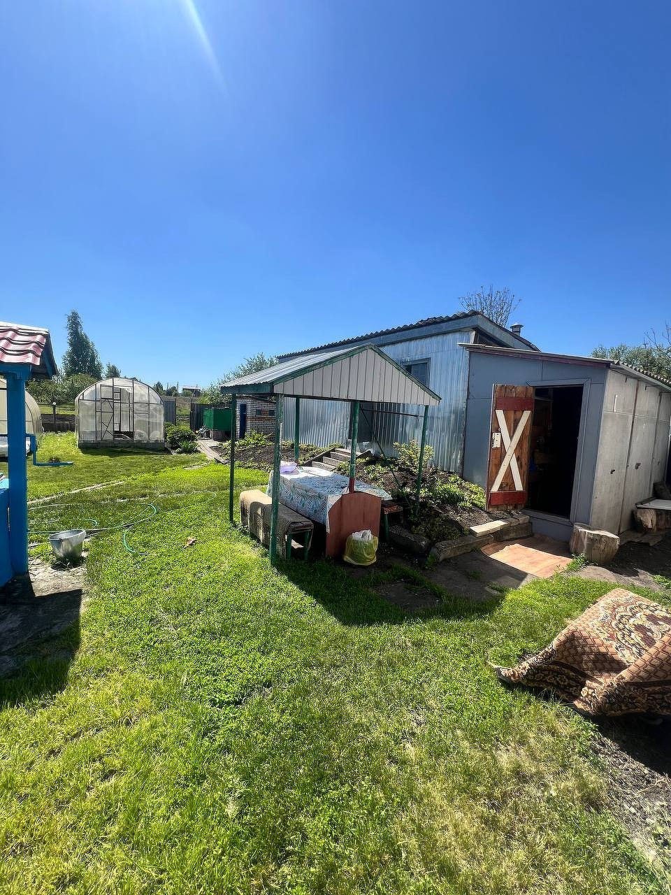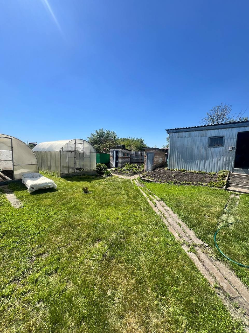 2 теплицы, баня, летняя кухня, сарай, гараж, летный душ.