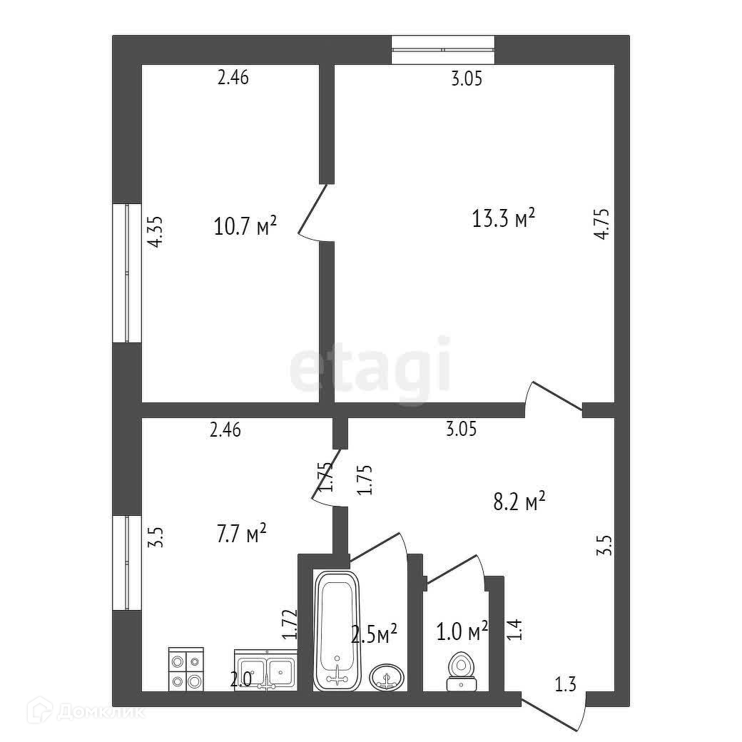 Общая площадь 43.2 м2