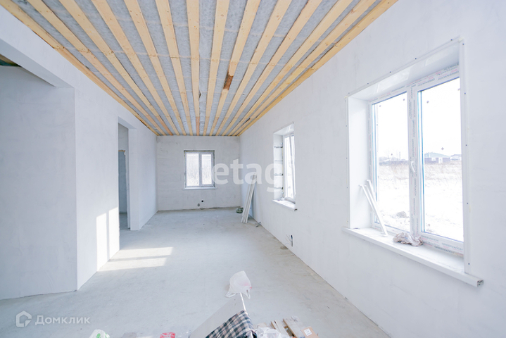 Просторная кухня-гостиная, три отдельных комнаты, совмещенный санузел. Продается с предчистовой отделкой, вся электрика проведена. На территории обустроен колодец, есть вывод шамбо.