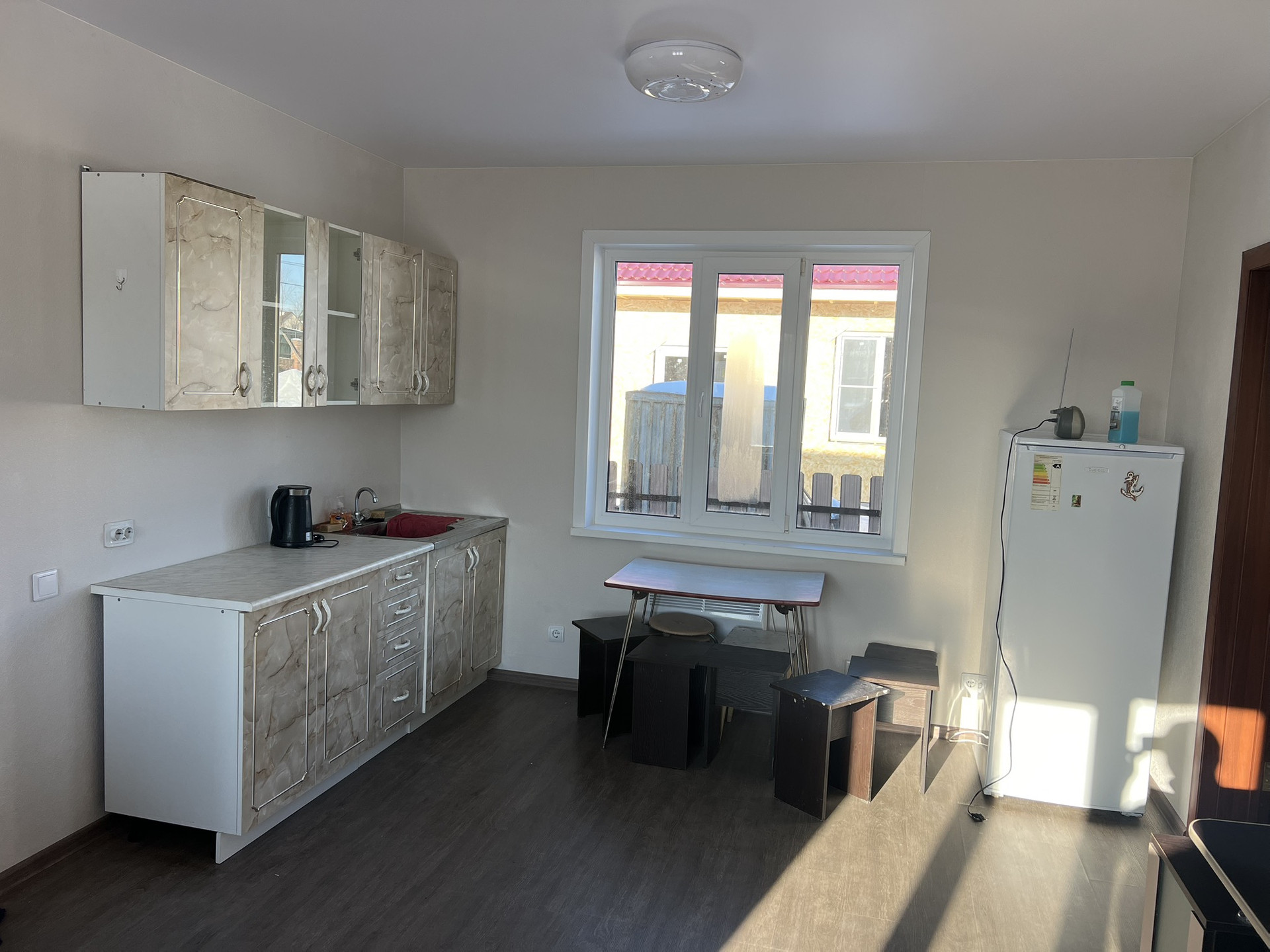 Сделан свежий ремонт. Натянуты потолки. все коммуникации.Шамбо,скважина,электричество 15Квт. По улице проведен газ.
