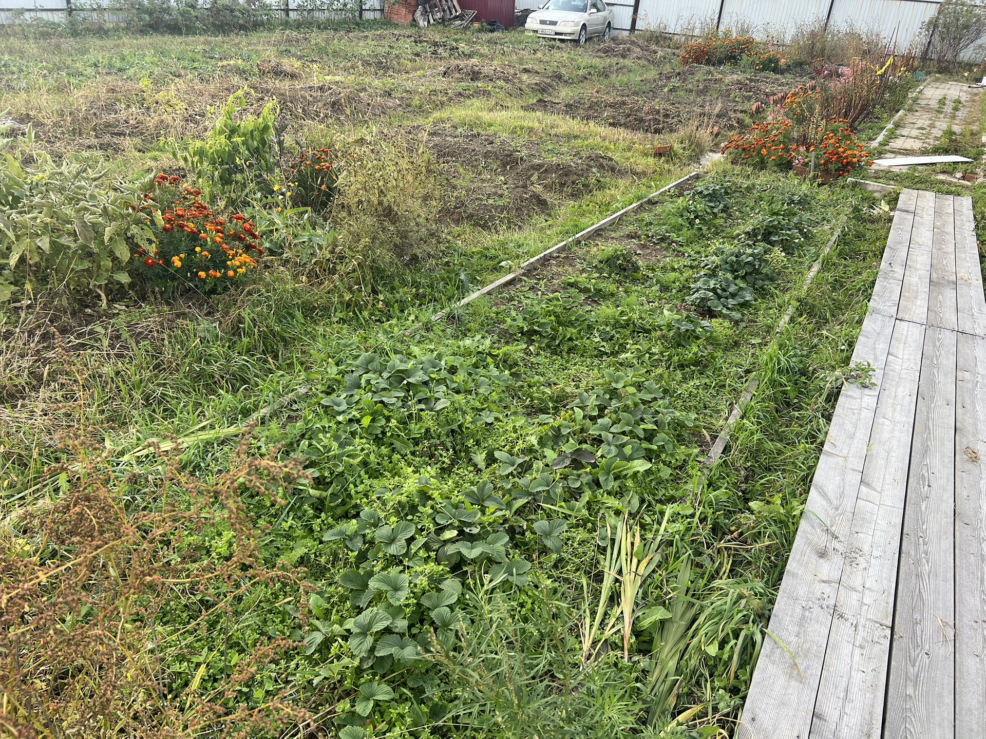 На участке плодово-ягодные посадки.Хороша и плодородная земля.