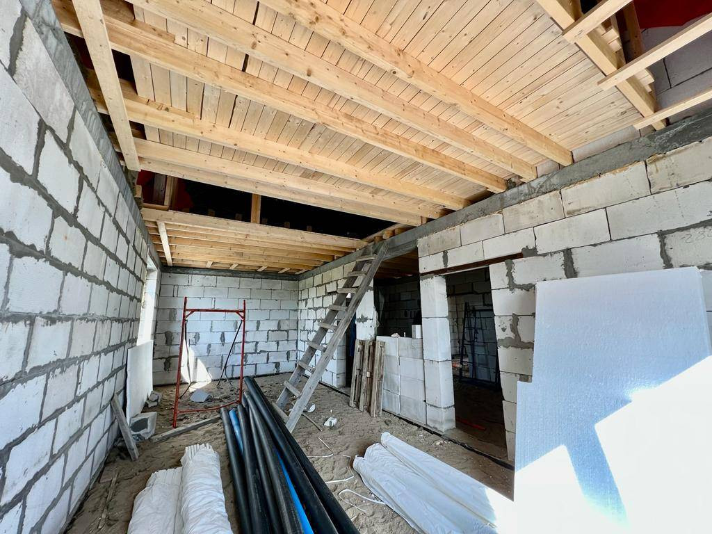 Дом выполнен из газоблока с утеплением 10 см мин ватой.