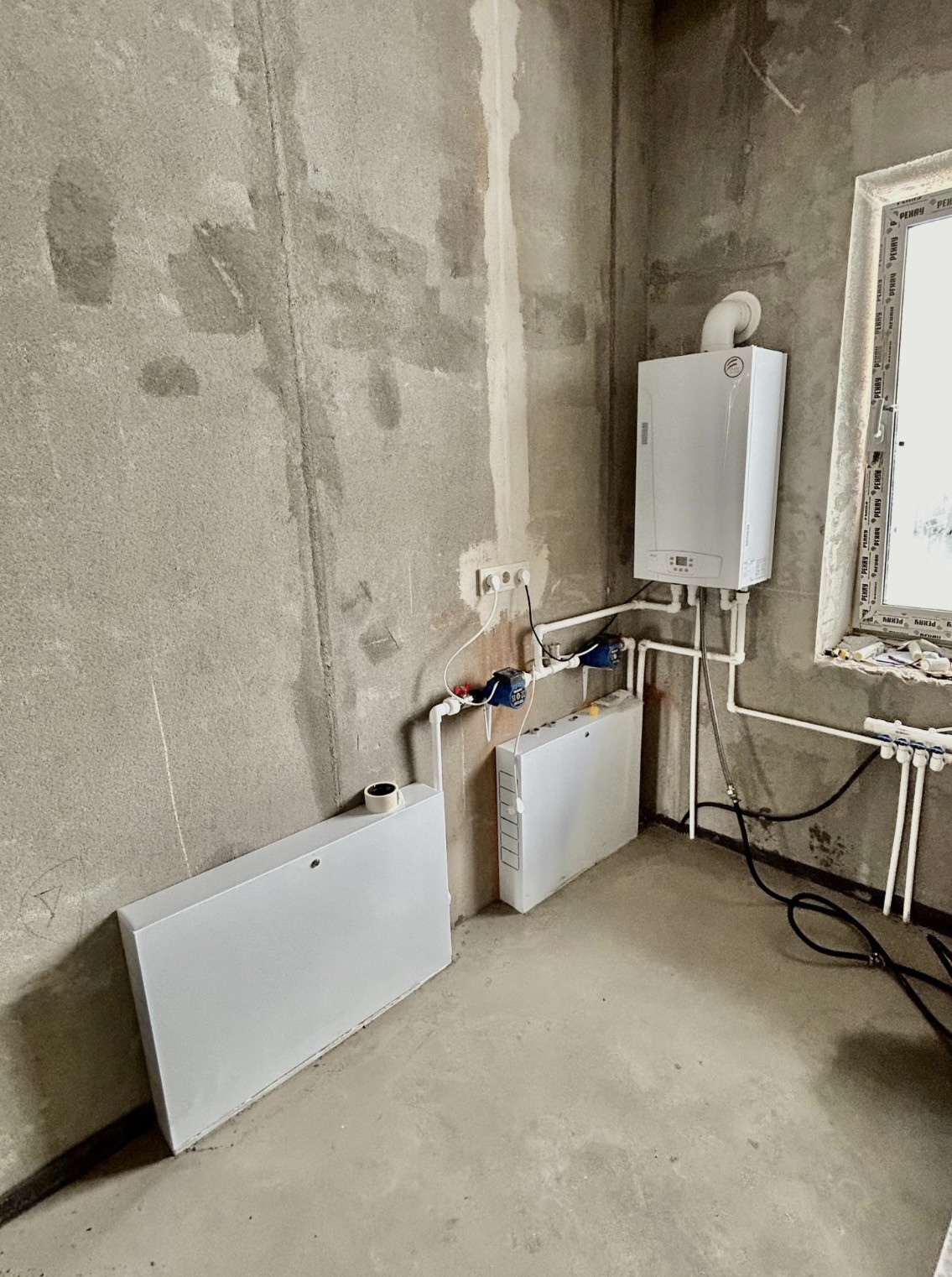 В доме холодная и горячая вода, свет ,газ ,теплые полы по всему периметру, отопление, два санузла ,две гардеробных комнаты, три спальни ,совмещенная кухня -гостиная .