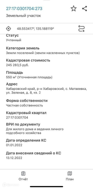 Стоимость недвижимости: