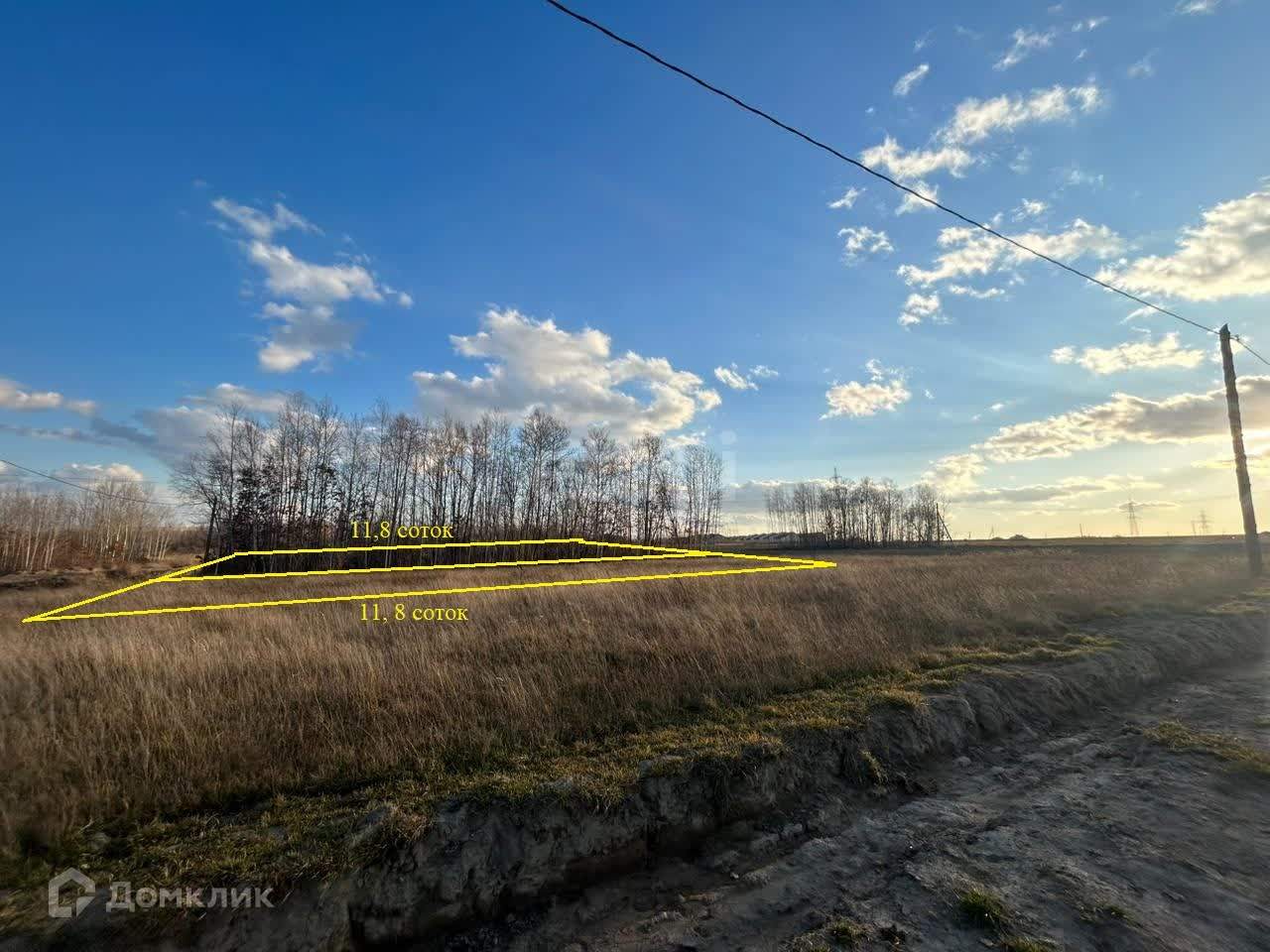 Около участка есть столб с электричеством.