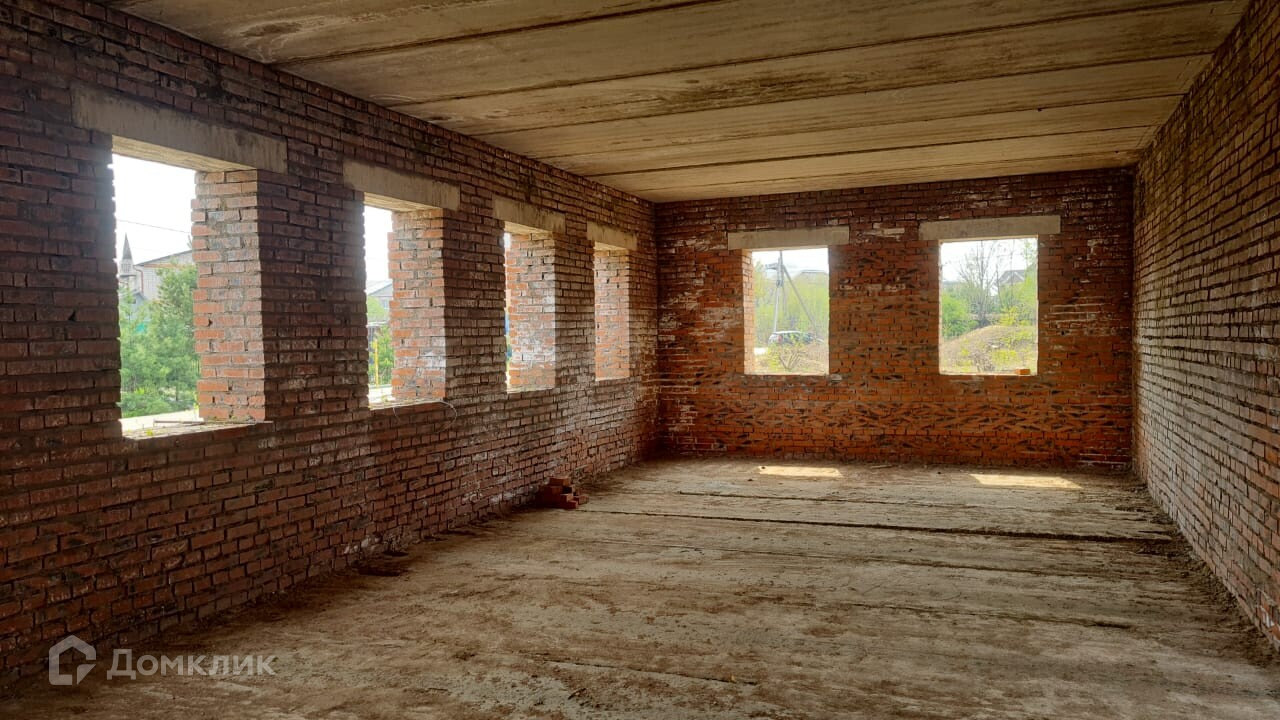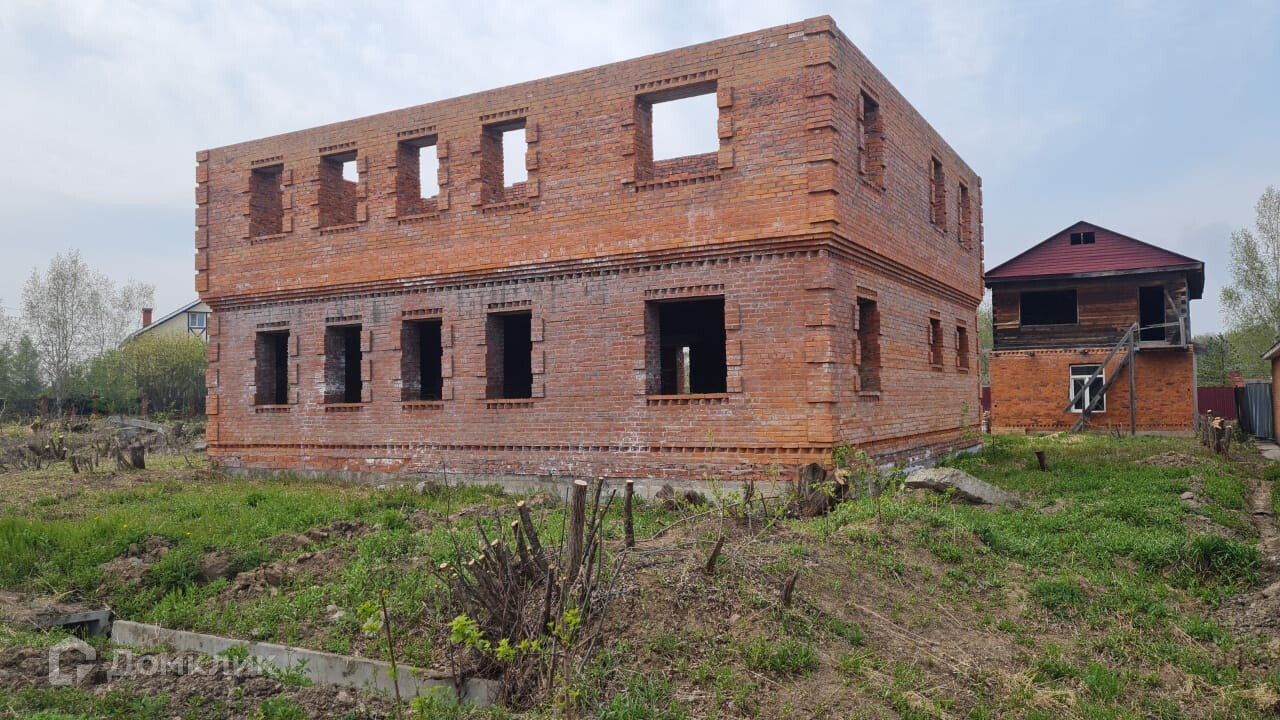 1\. 2х этажный недостроенный дом из красного кирпича, капитальный фундамент, плиты перекрытия. Габариты дома 12х14м. Данный дом можно достроить с минимальными вложениями, т.к. одни из самых дорогих работ уже проведены! Установлено шамбо.