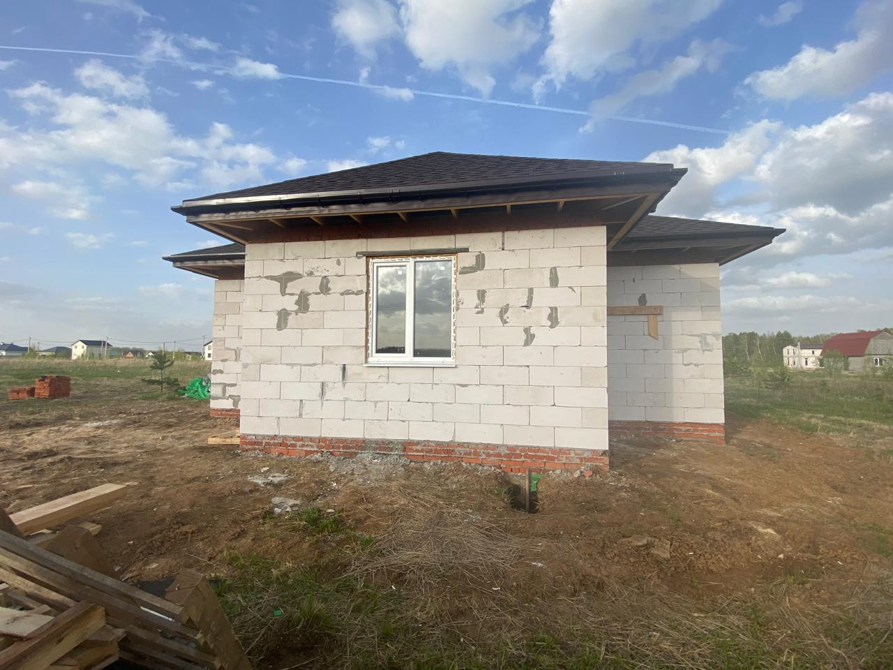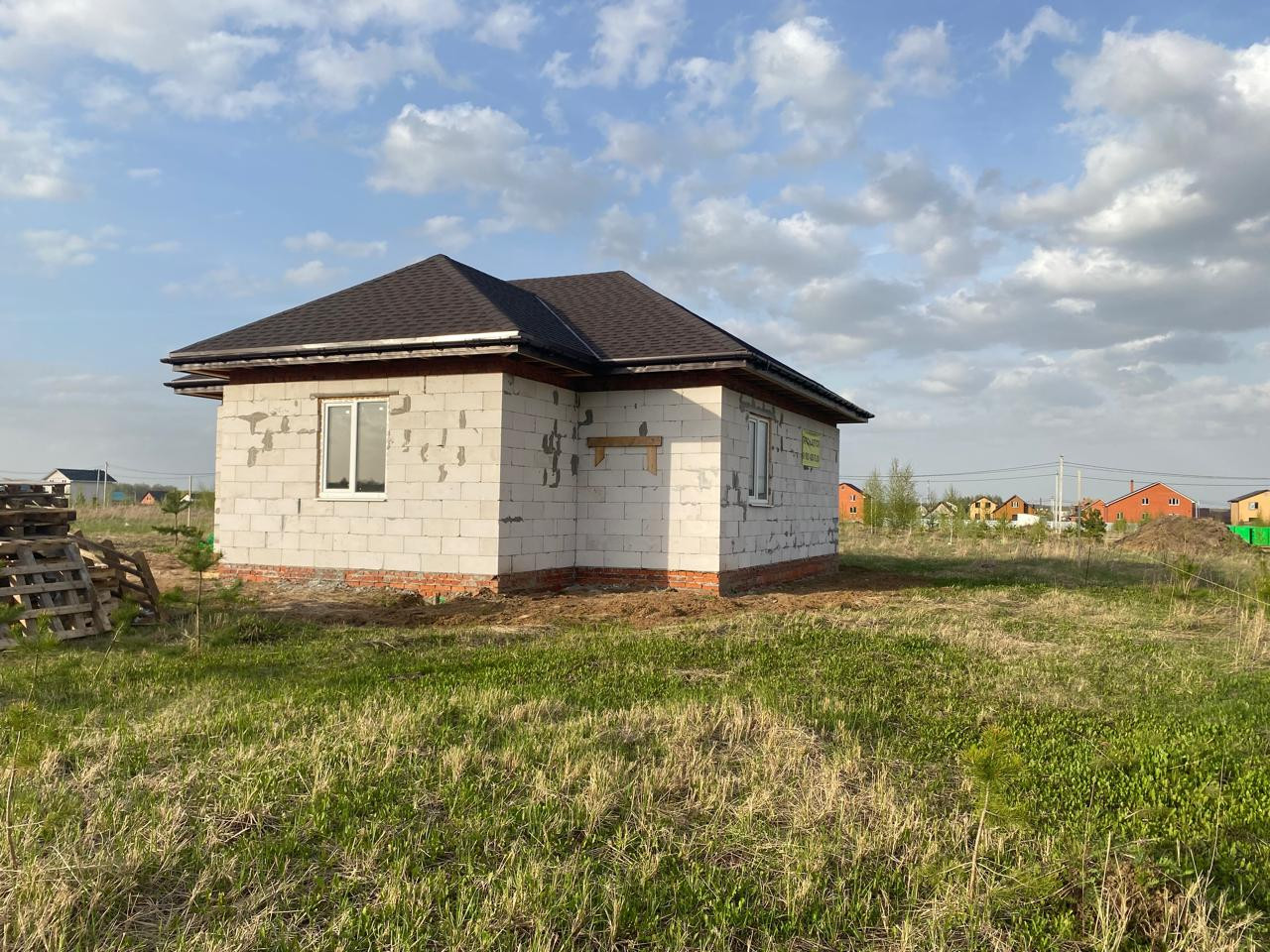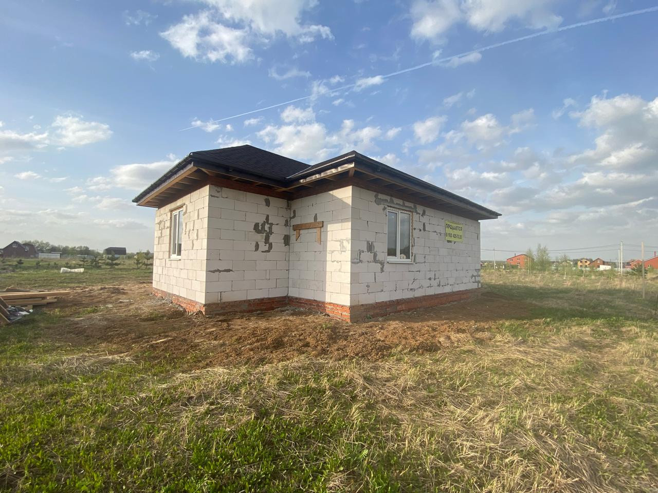 Продается новый дом в с. Матыра Луховицкого района. Дом блочный ( ширина 30 см) .Фундамент 40:110 заливной. Полы бетонная плита ( заливная). Цоколь кирпичный 40 .Крыша - мягкая черепица. 2 спальни, кухня -столовая, с/у  раздельный, терраса, холл. Участок 10 соток.