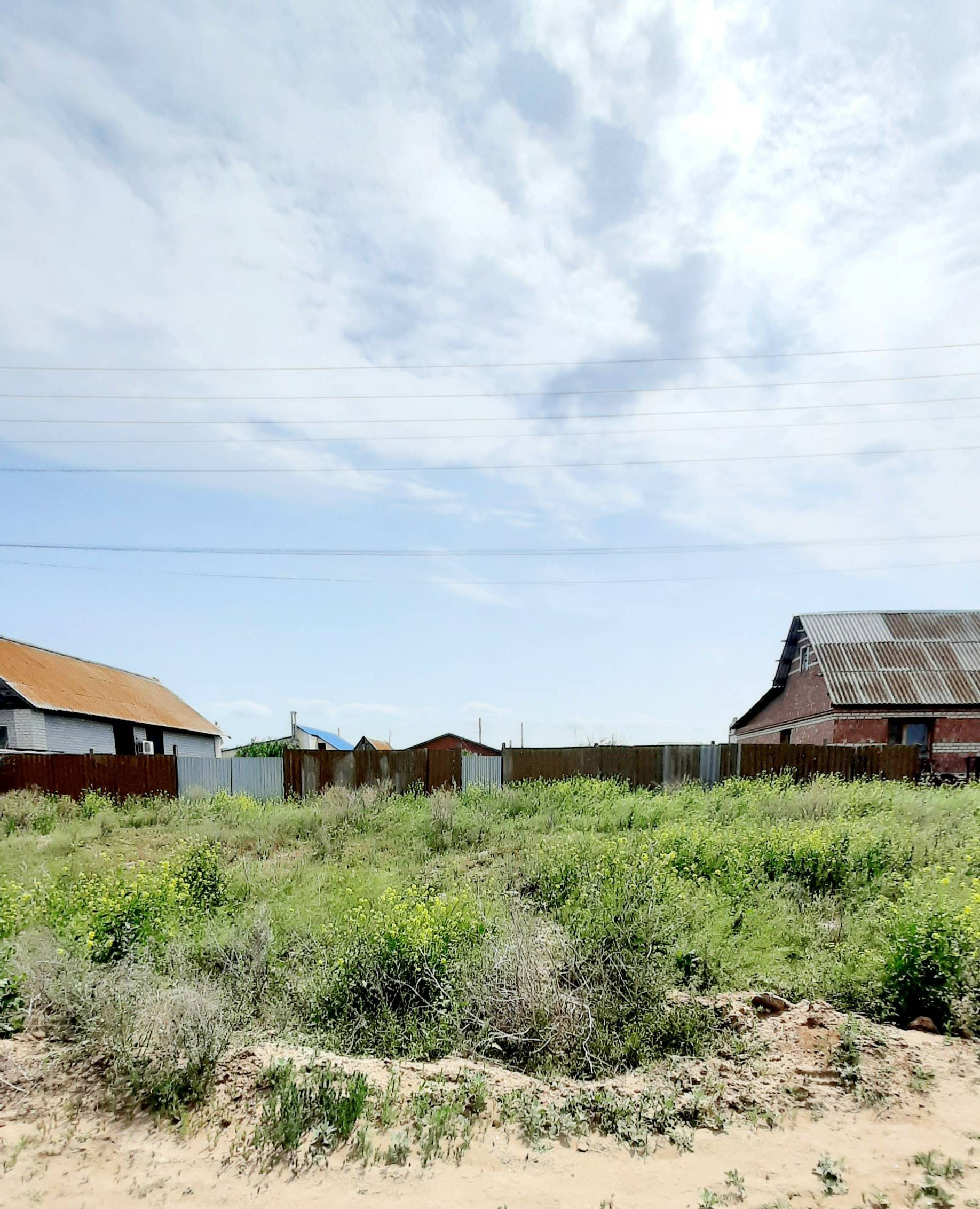 Участок ровный, правильной формы. Со всех сторон огорожен забором. Есть калитка и ворота для въеда автомобиля