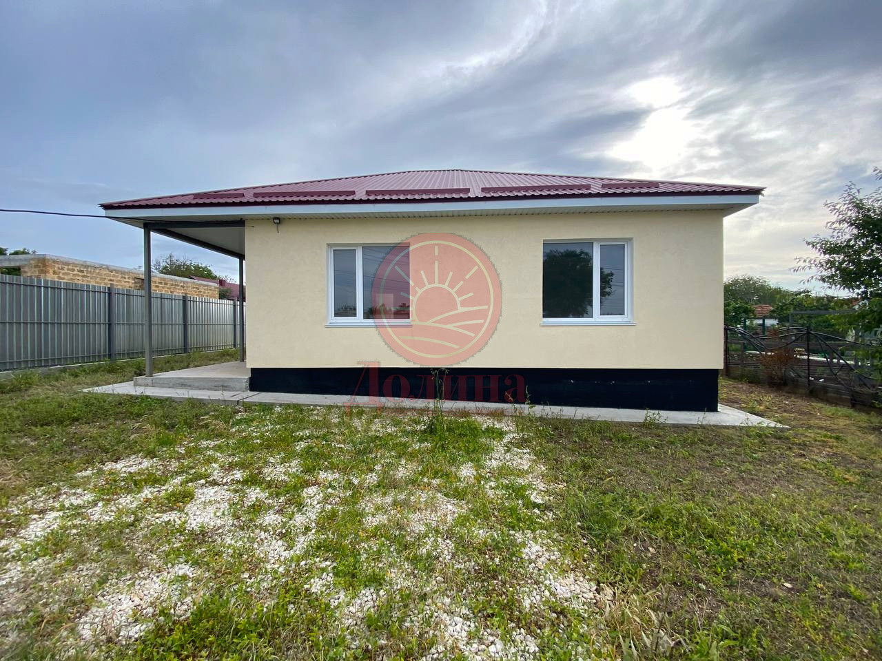 Материал постройки: ракушечник, утеплен пенопластом, оштукатурен короедом и покрашен.