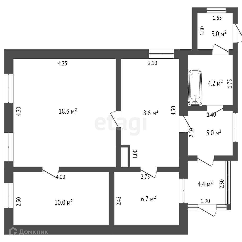Общая площадь 60.2 м2