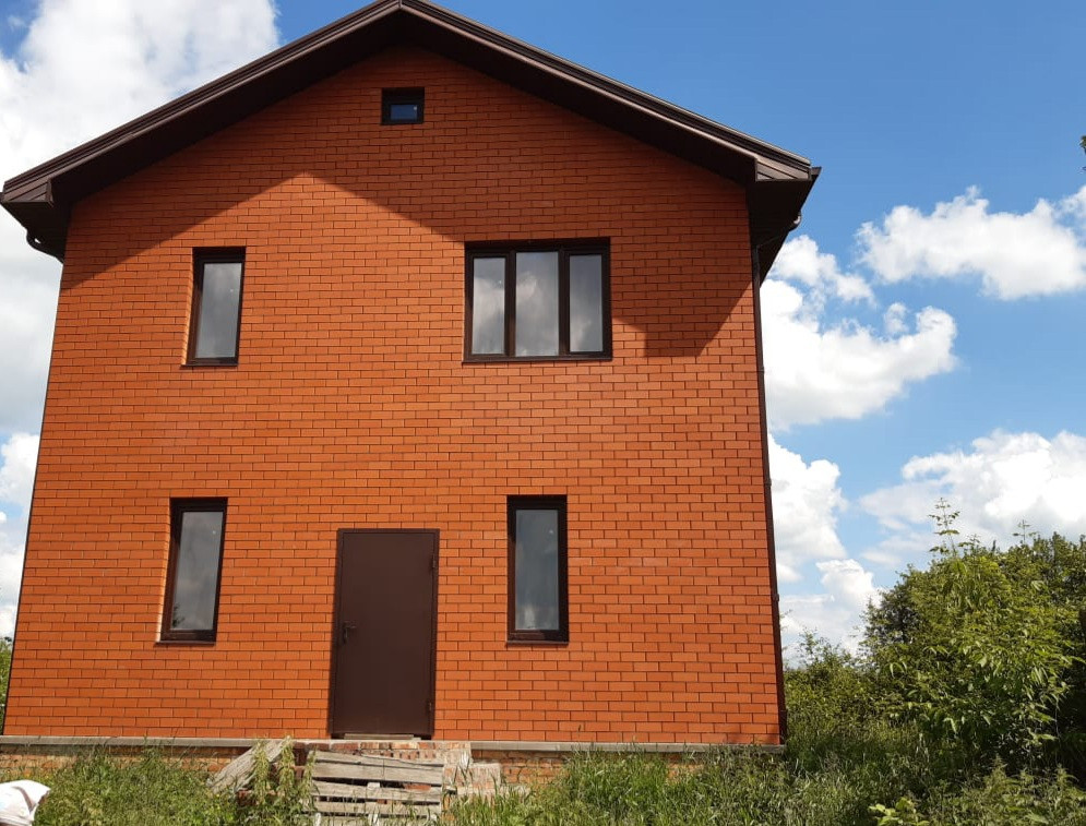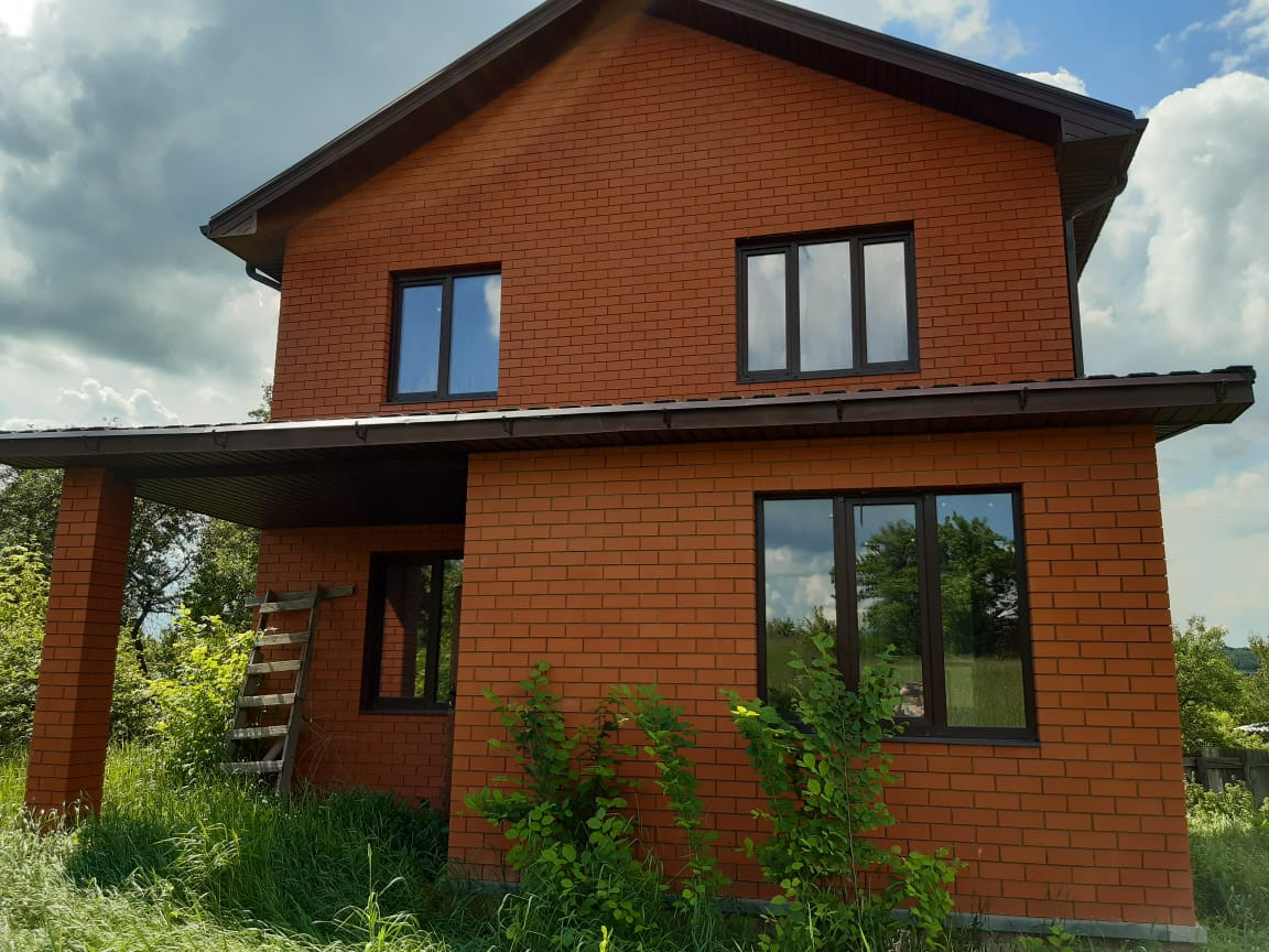 Продам двухэтажный дом 100,7 кв.м, плюс мансарда. Отделка черновая, перекрытия железобетонные плиты. Строили для себя из качественных материалов. Высокий цоколь 1,5 метра. Стены из аэробела 400мм и облицовочного кирпича. Окна и ПВХ с энергосберегающей пленкой. Крыша матовая металлочерепица. Полы бетонная стяжка, электропроводка по всему дому, счетчик на столбе в дом не заведен. Канализация выведена в септик (3 кольца и люк). На участке скважина 41 метр. По границе участка проходит газовая труба. Продаем два участка, т.к один будет узок. Получается ровный участок 60 соток. На втором старый деревенский домик, сарай и обложенный кирпичом погреб.