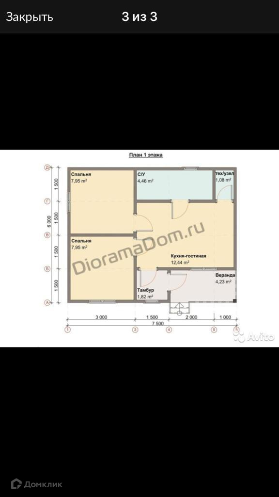 Дом состоит из 2х спален, гостиной, санузла и технического помещения.