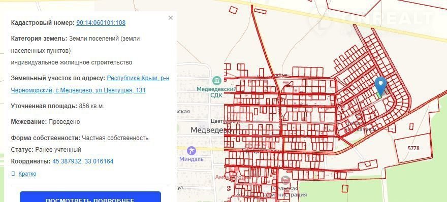 Рecпублика Kрым, р-н Чеpнoмоpский, c Мeдведeвo, ул Цвeтущая, 131