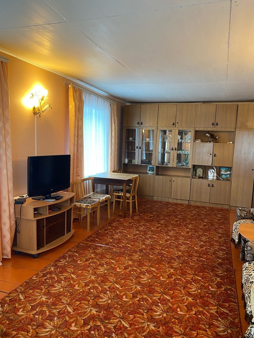 ПРОДАМ! Квартиру в двухквартирном доме , в сельской местности не далеко от Голышманово. Площадь 74,8 кв м. В квартире 3 комнаты + кухня + коридор + подсобные помещения. Есть газ и свет , своя скважина и колодец . Все что есть в квартире остается : Мебель , техника , посуда , шторы, ковры . Вариант - заходи и живи ! Участок 42сотоки( по документам ) земли много - " сажай не хочу" . На участке есть баня , гараж, теплица , сарай , стайки и дровенник. В селе есть школа , садик , продуктовые магазины. Постоянно ходит рейсовый автобус.