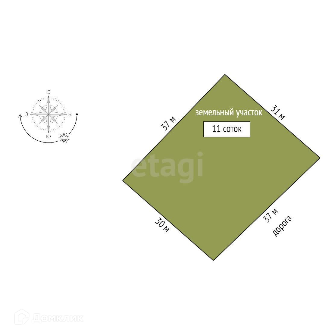 Площадь участка 11 сот.