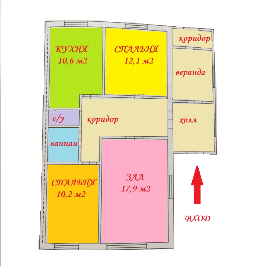 Материалы стен- железобетонные плиты. Крыша шифер. Дом состоит из трех комнат (17,9; 12,1 и 10,2 кв.м.) и кухни (10,6 кв.м), с/у раздельный и в кафеле. В доме сделан косметический ремонт: новые обои, окна пвх, нятяжной потолок со светильниками, новые межкомнатные двери и входная металлическая, на полу линолеум.