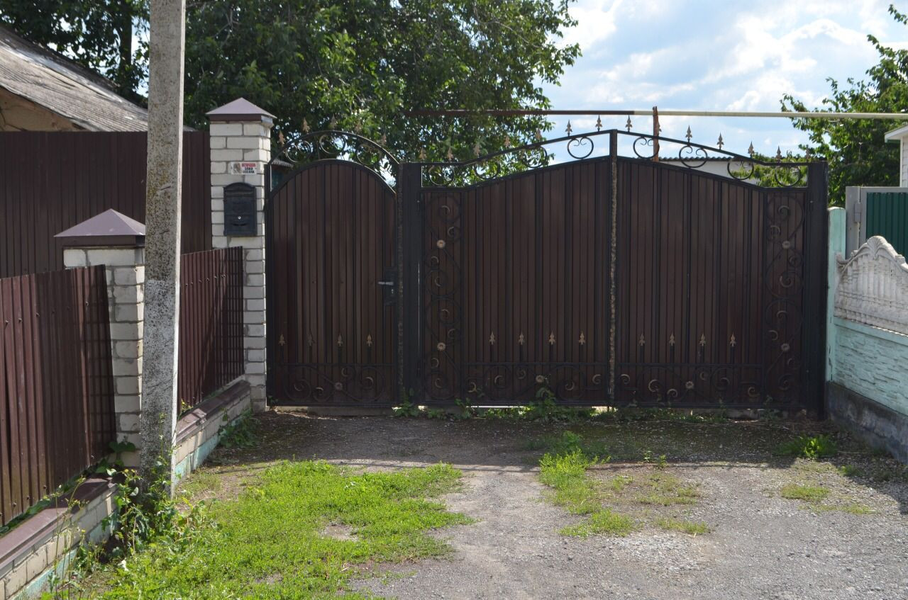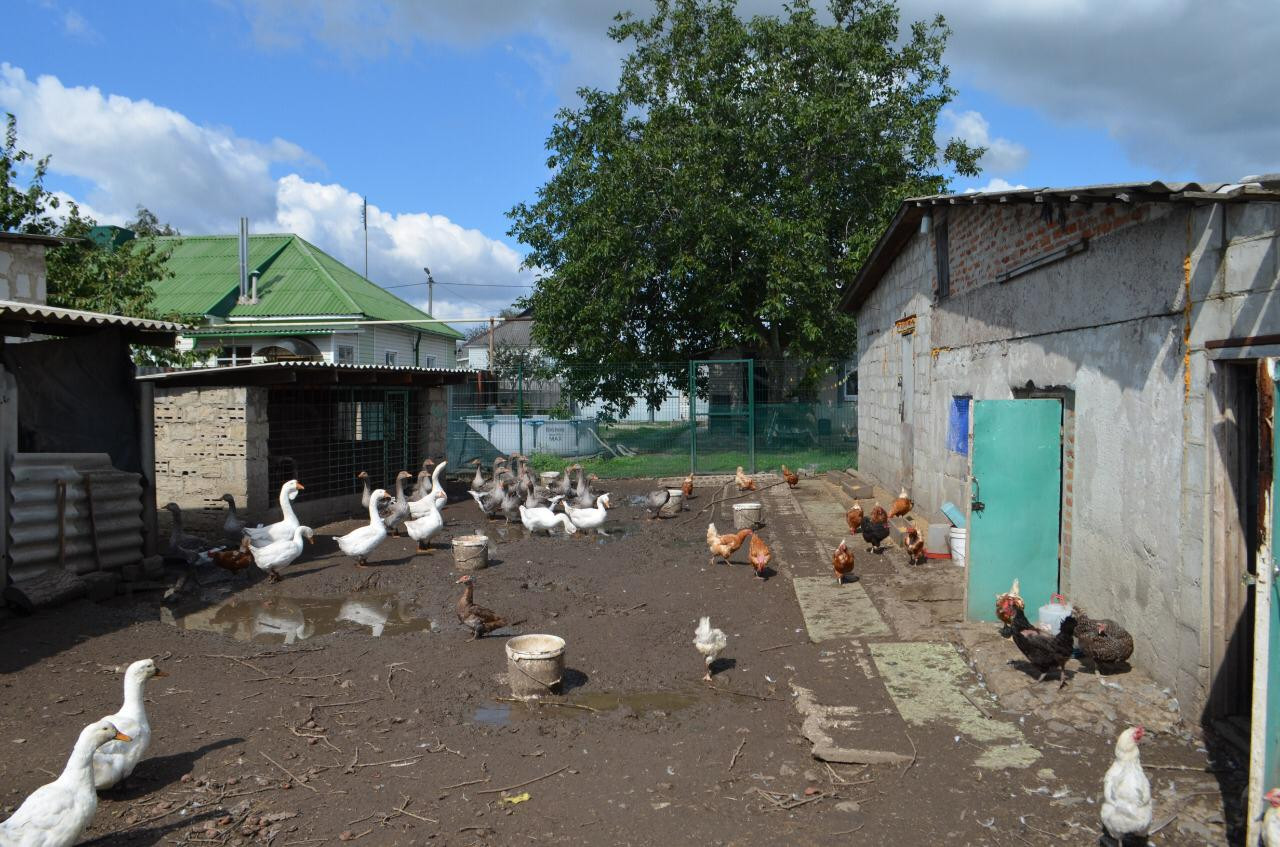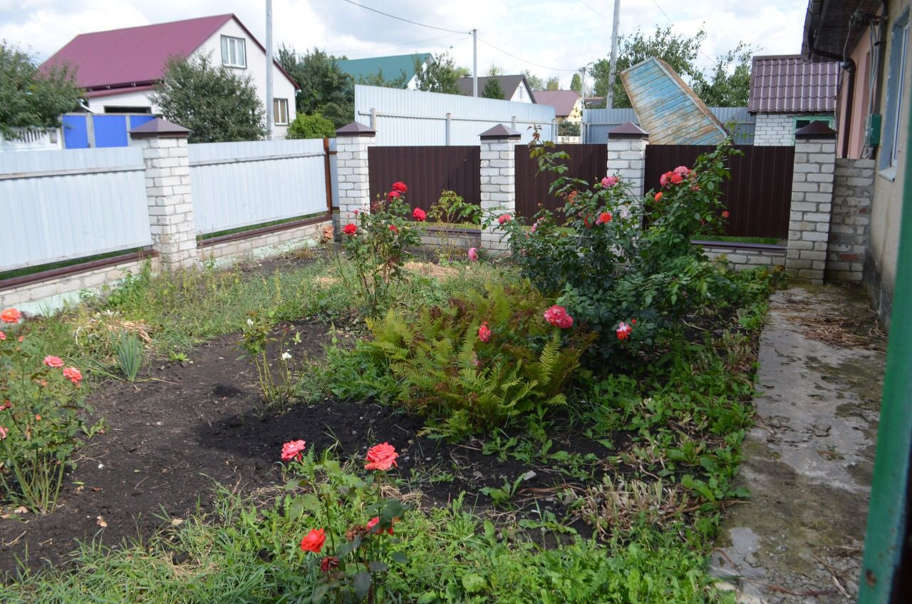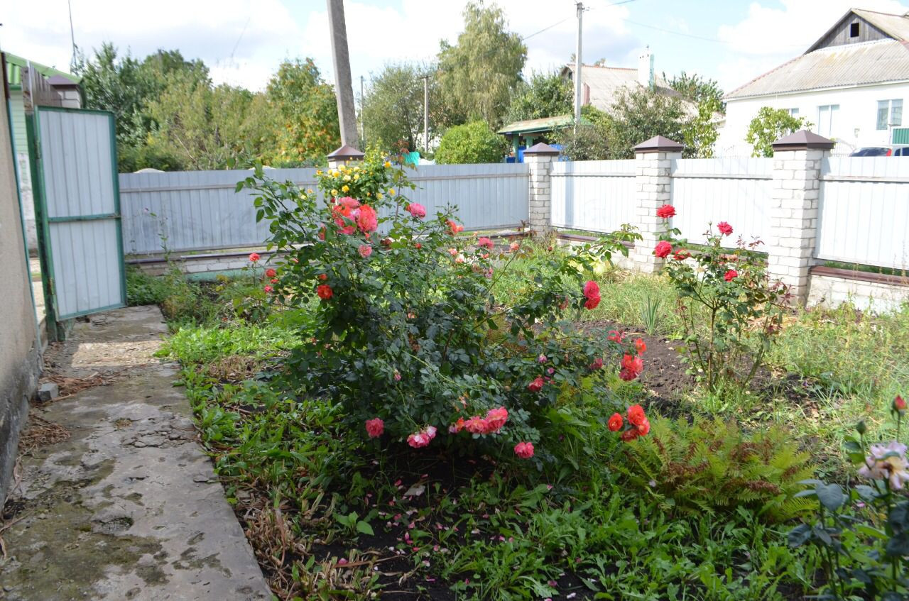 Участок огорожен, ворота из металлопрофиля. Во дворе имется много хозпостроек. Весь двор утопает в цветах и фруктовых деревьях, туи.