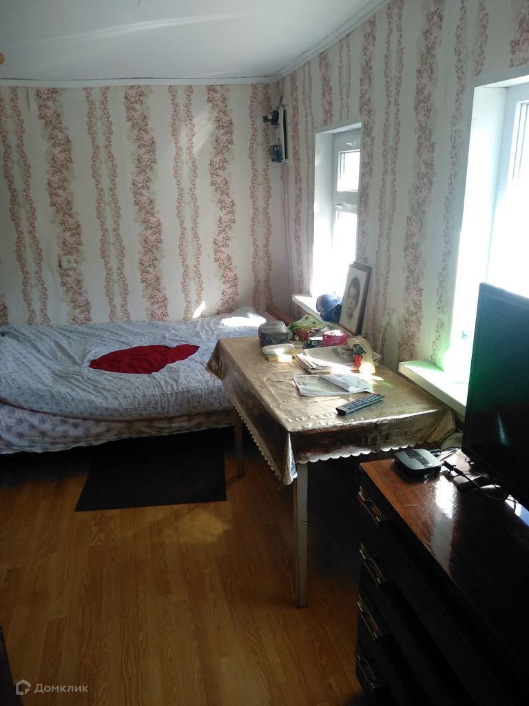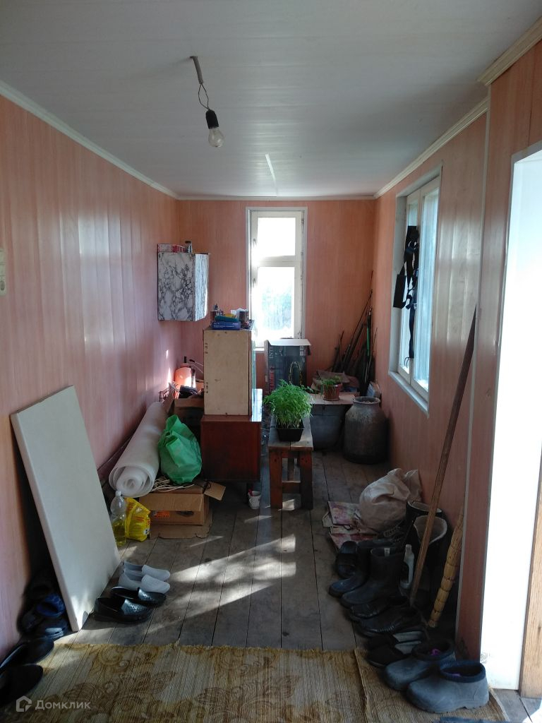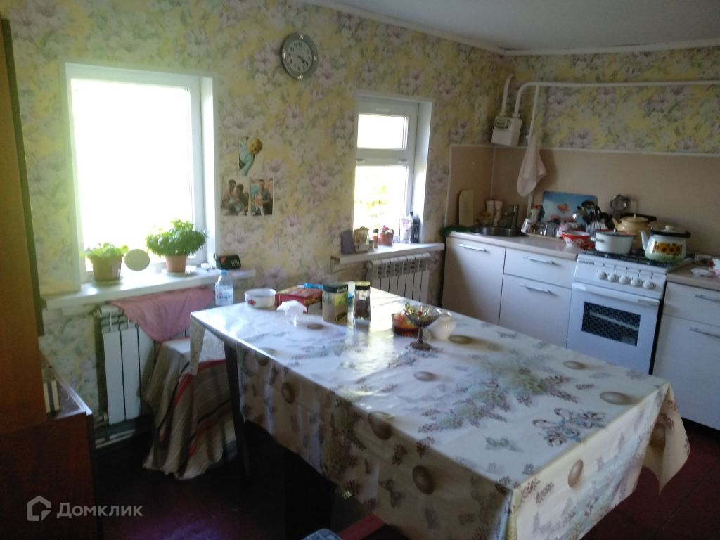 Дом дубовый, обложен кирпичем, летом не жарко, зимой не холодно, в передней части дома расположен сан узел и веранда, далее большая кухня 13 кв. м, большая проходная комната 16 кв. м. и маленькая комната около 5 кв. м.