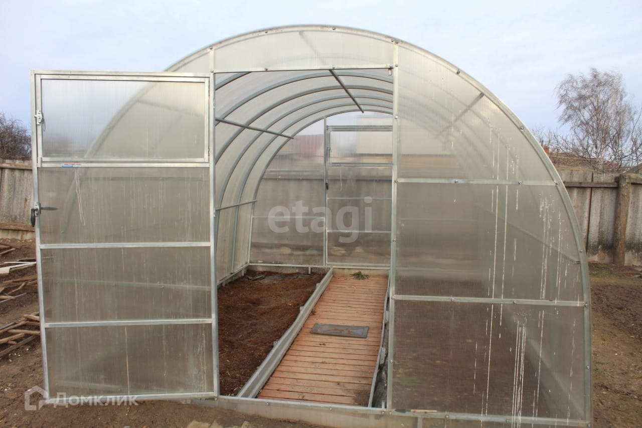 Железные ворота, сарай из кирпича, есть погреб. Участок огорожен. Во дворе остаются строительные материалы (блок), хорошие стационарные качели, дровяник с дровами для бани.