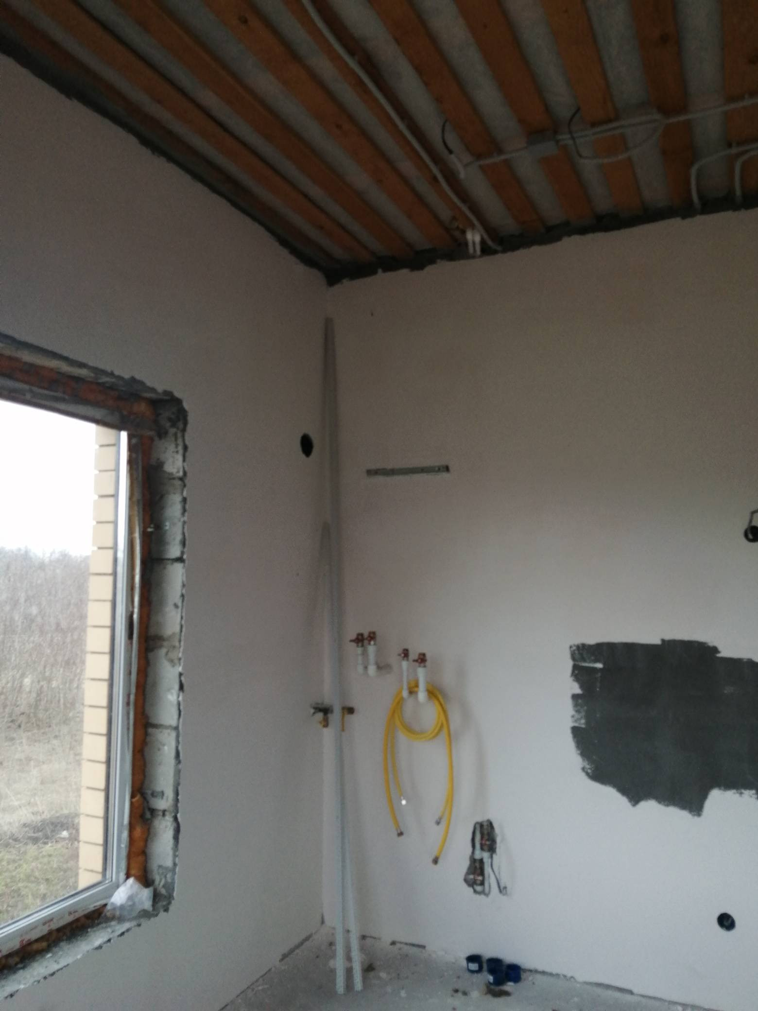 В доме все коммуникации, газ заведен есть котел и радиаторы. По первому этажу теплый пол, кроме спален. Стяжка пола чистовая под плитку или ламинат.