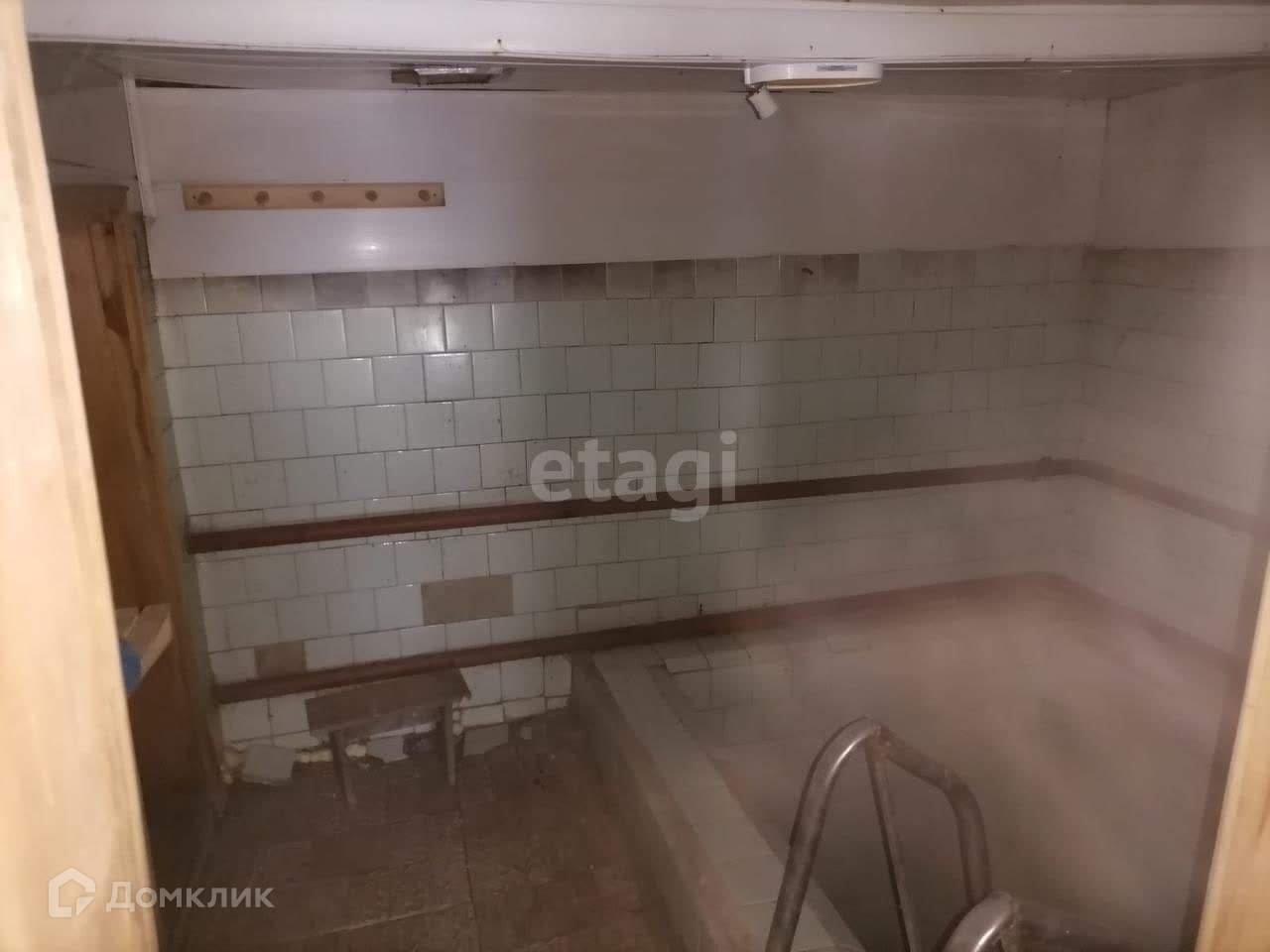 Баня кирпичная, обшита деревом, есть бассейн.