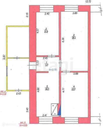Общая площадь 46.3 м2