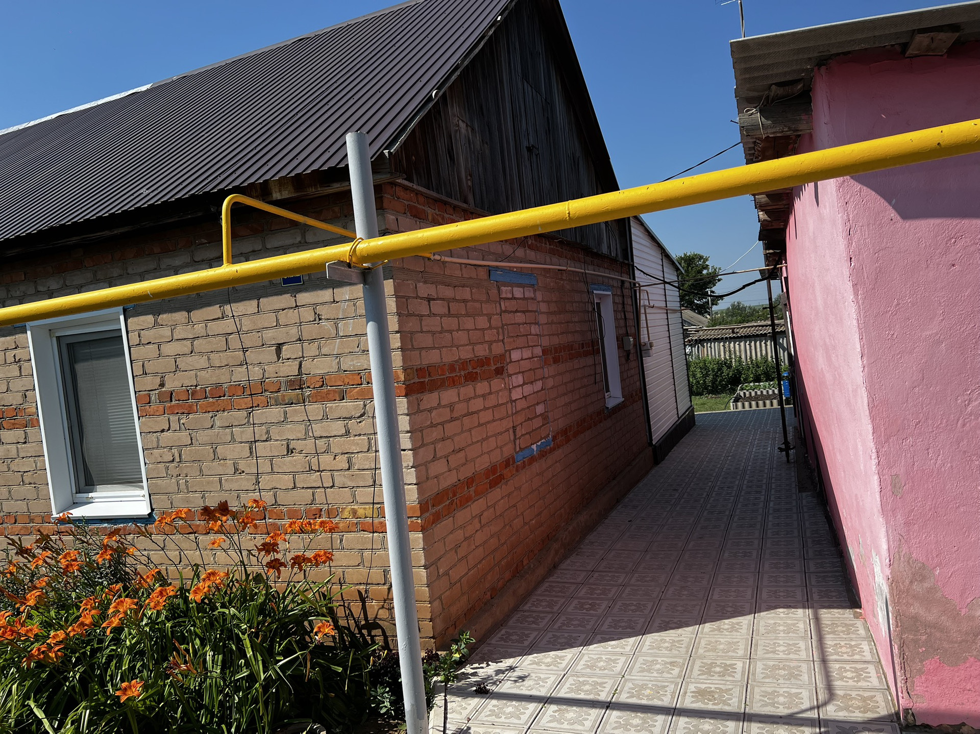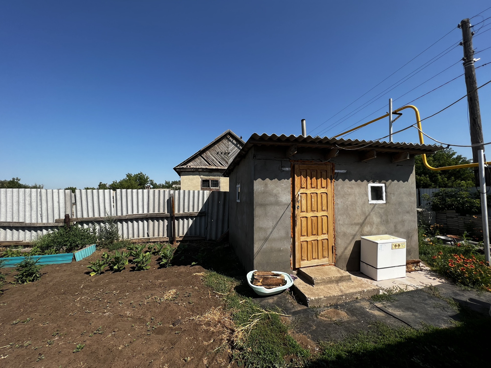 Дом расположен на большом участке земли, где есть баня, гараж и летняя кухня, большой огород, задний двор с хозяйственными постройками