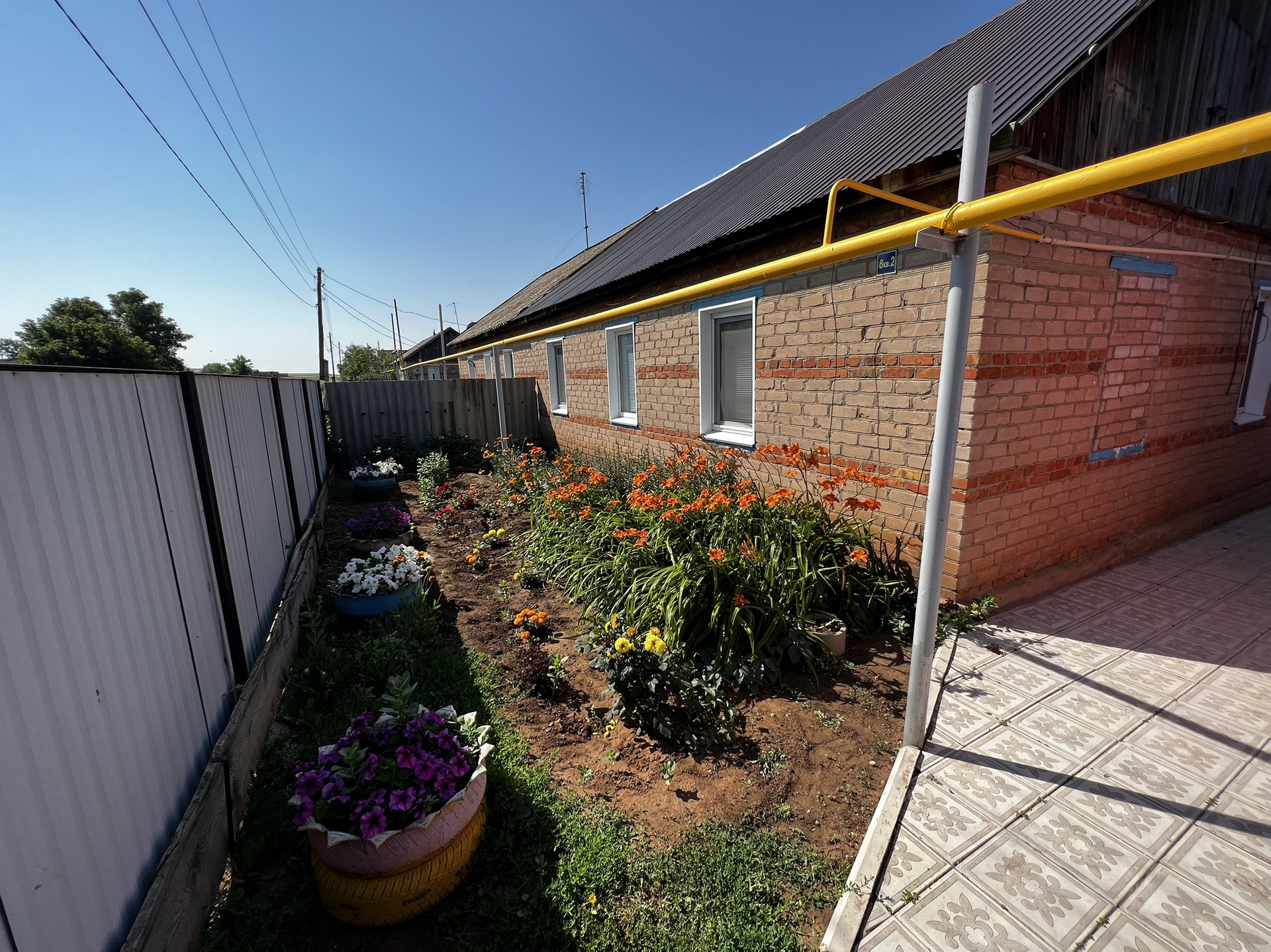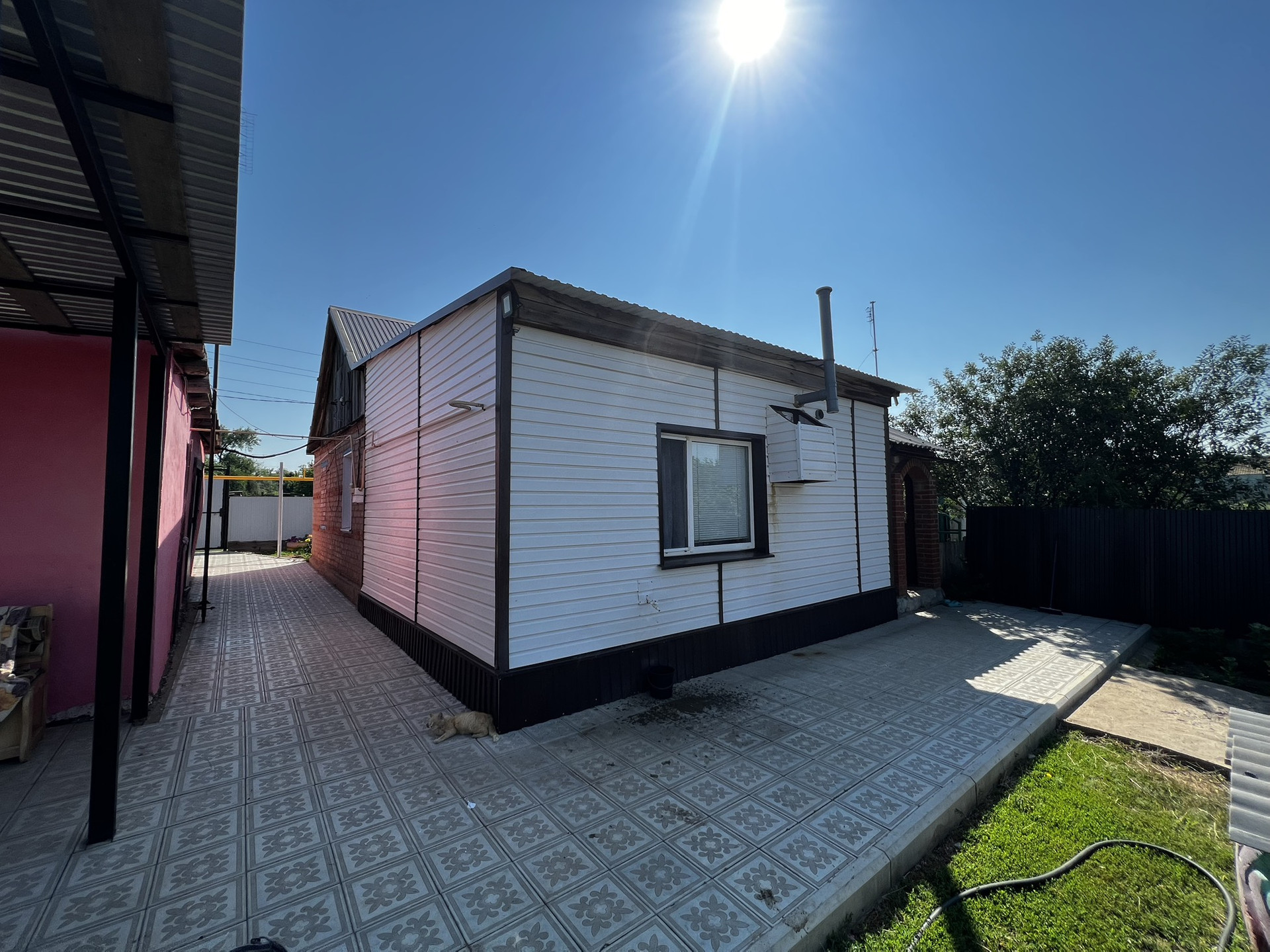 Двор выложен тротуарной плиткой
