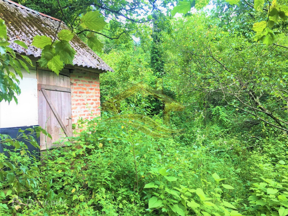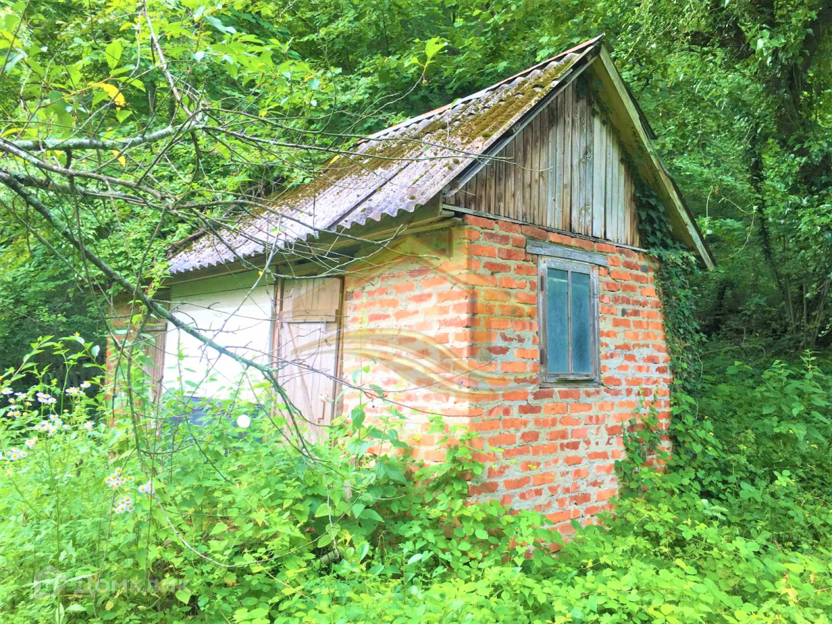 На участке несколько плодовых деревьев, дом(нежилой) из кирпича; по границе участка - природный газ, электричество 15кВт, родниковая вода(бесплатно); соседи с одной из 4х сторон.