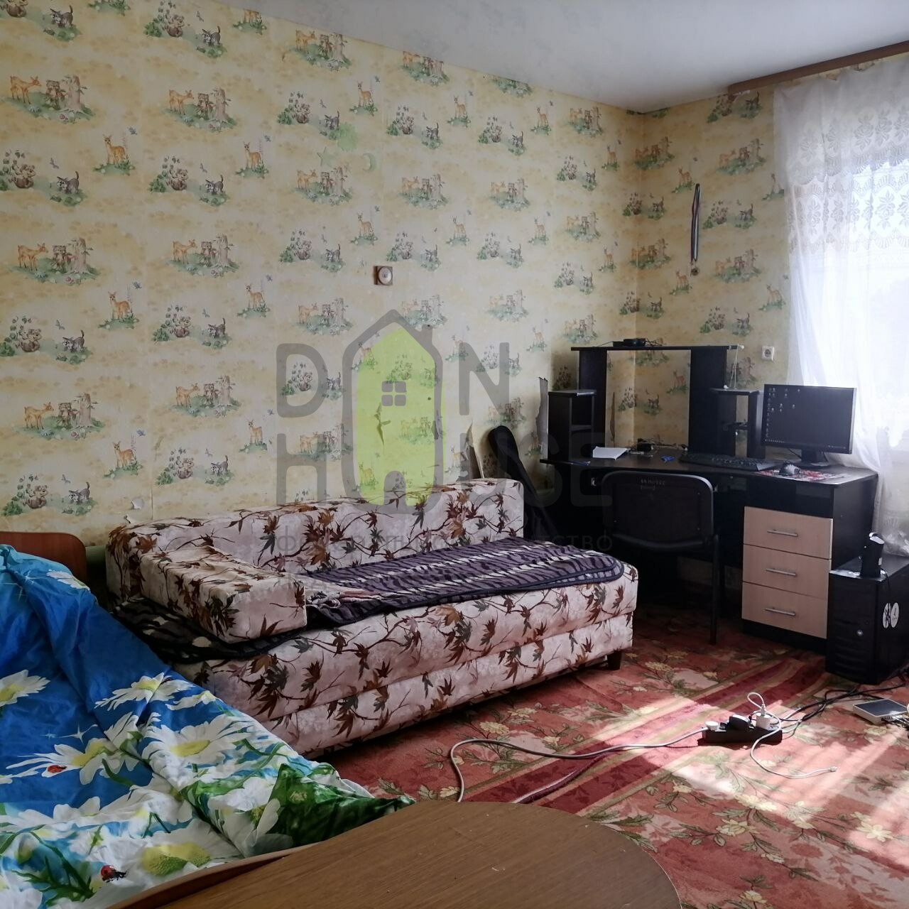 Светлый, теплый, просторный и уютный дом в отличном состоянии. В доме изолированные комнаты. 3 спальни, гостиная, кухня, санузел. Установлены окна ПВХ, натяжные потолки, стены оклеены обоями, на полу крашенные древесноволокнистые плиты.