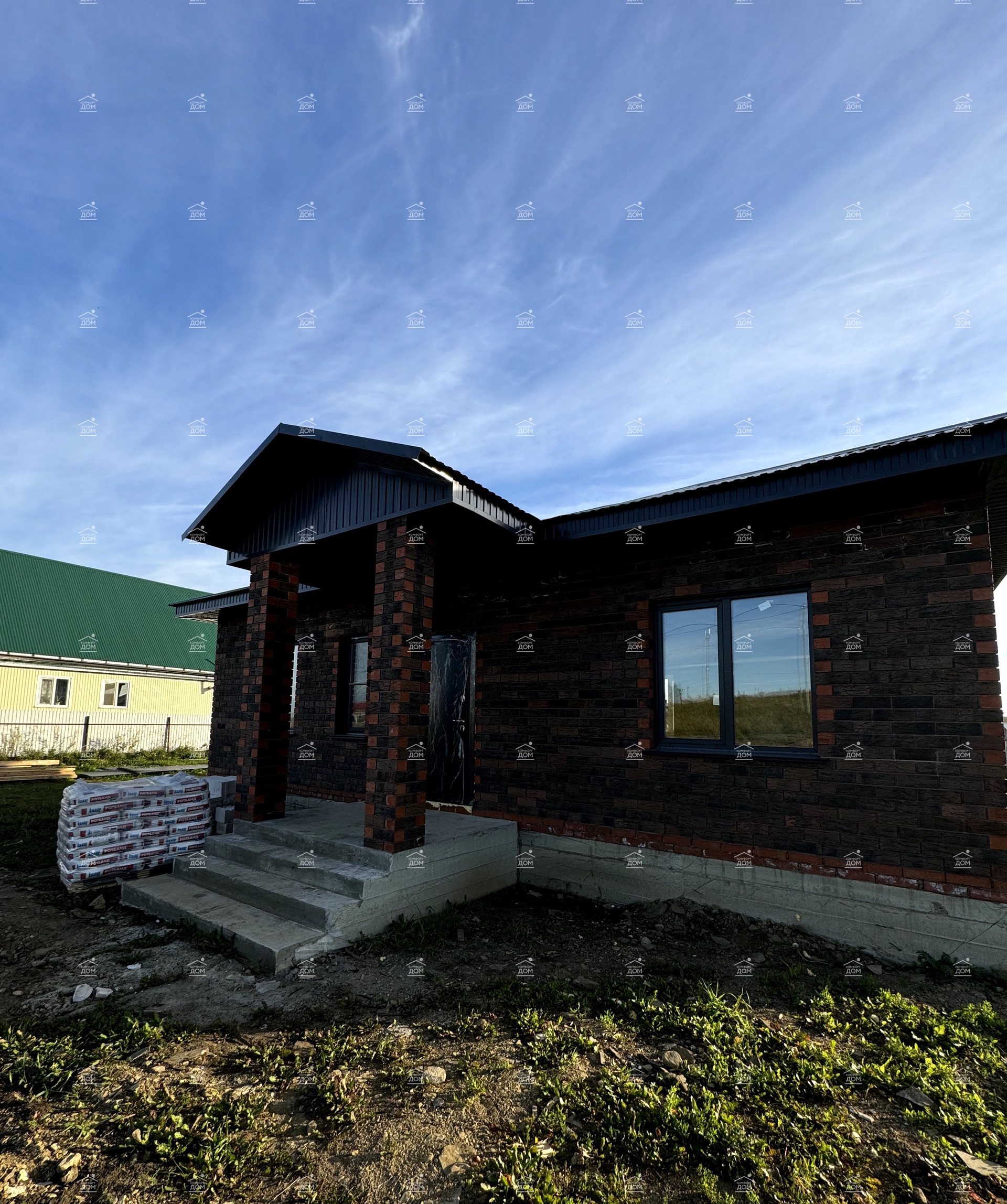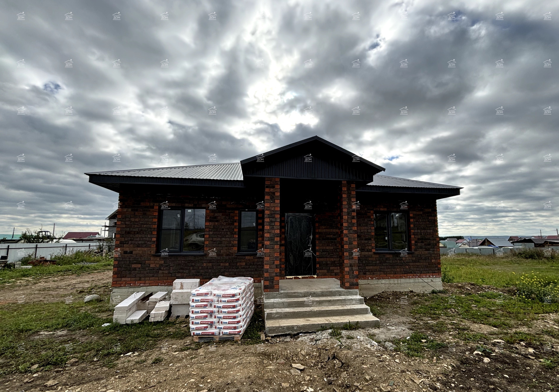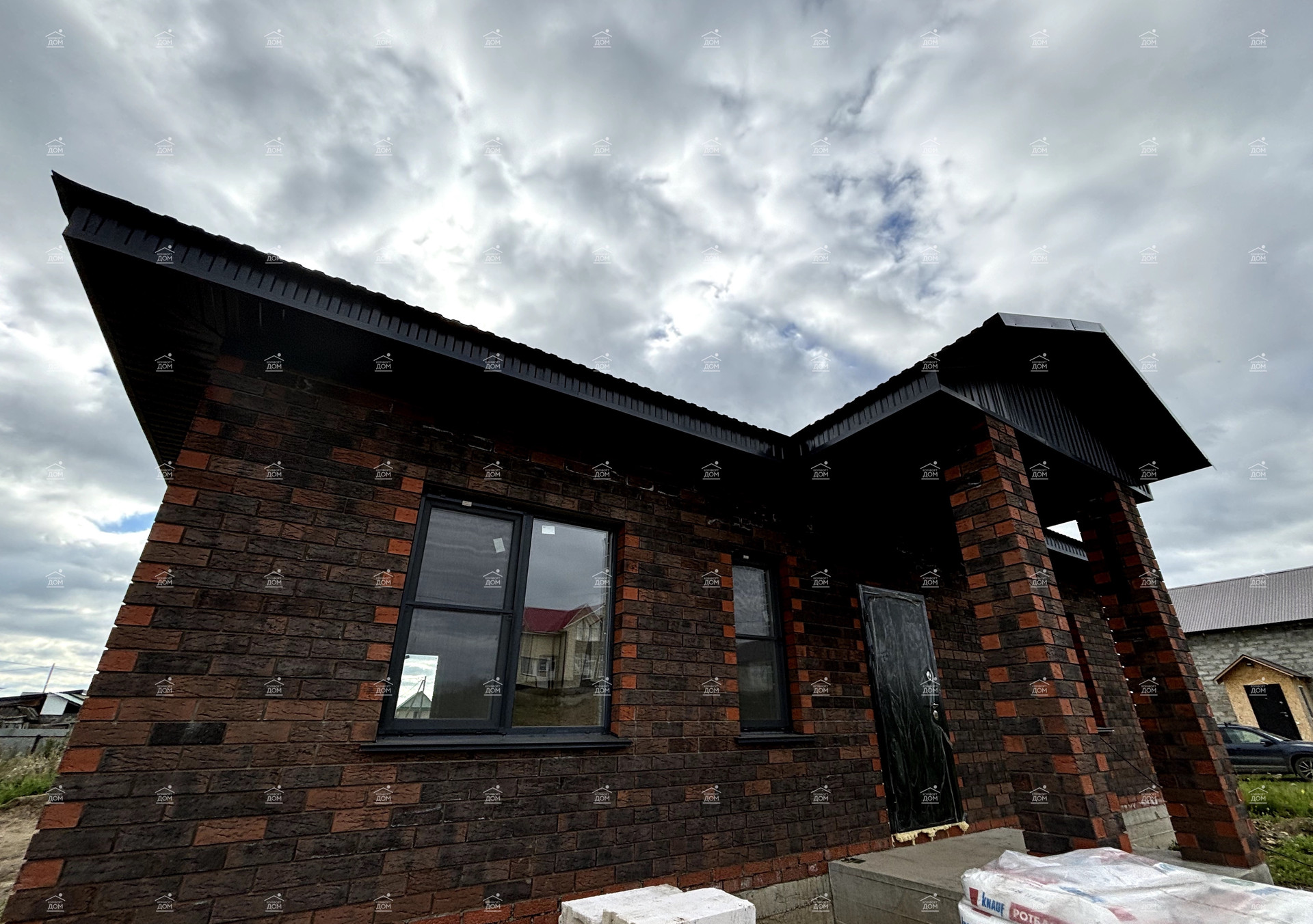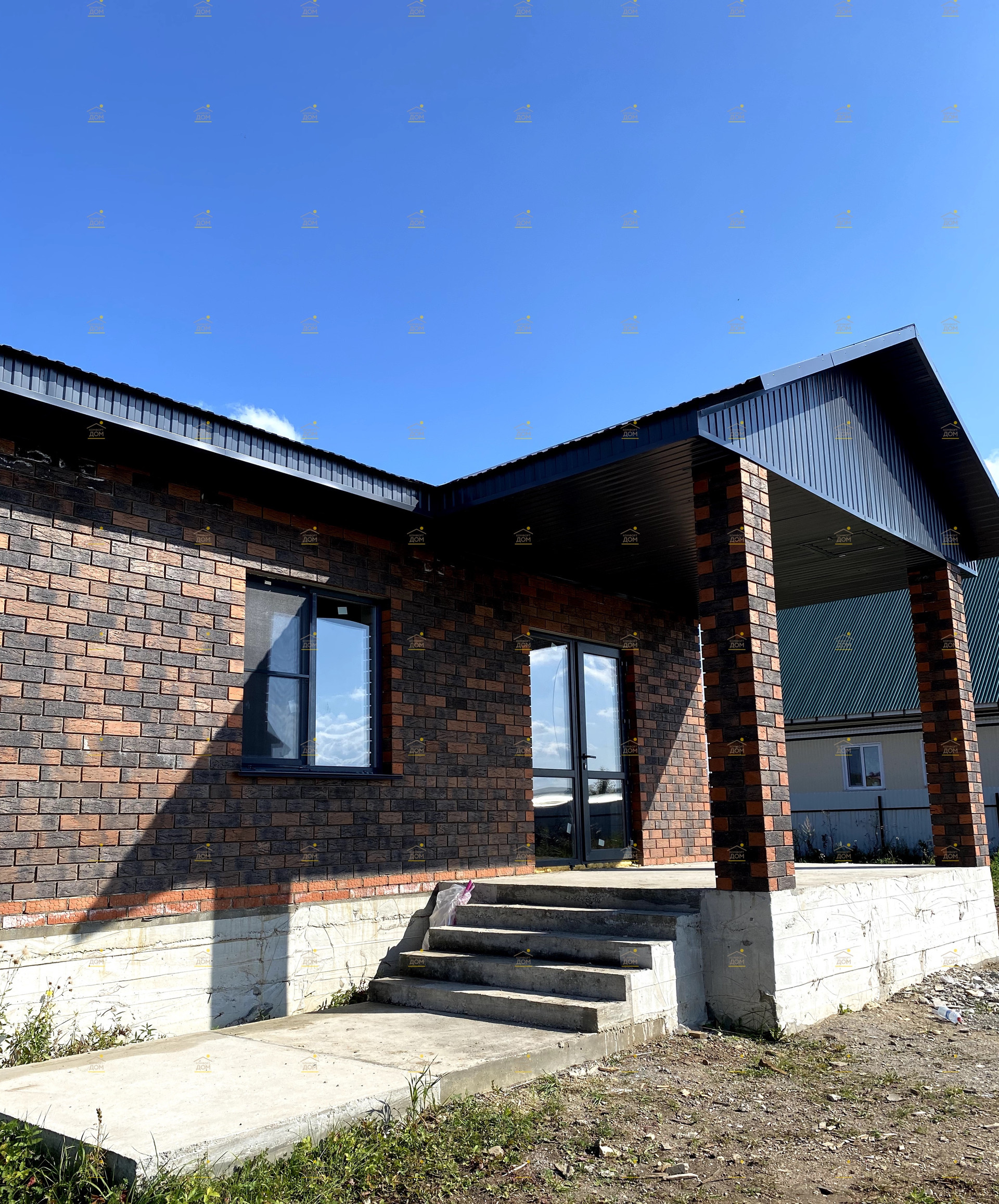 ✅Maтepиал : газоблок, облицовка кирпичом баварской кладки.Терраса на едином фундаменте- сделано от души, качественно, стильно- столбы кирпичные, высокий фундамент, выход с кухни-гостиной!
