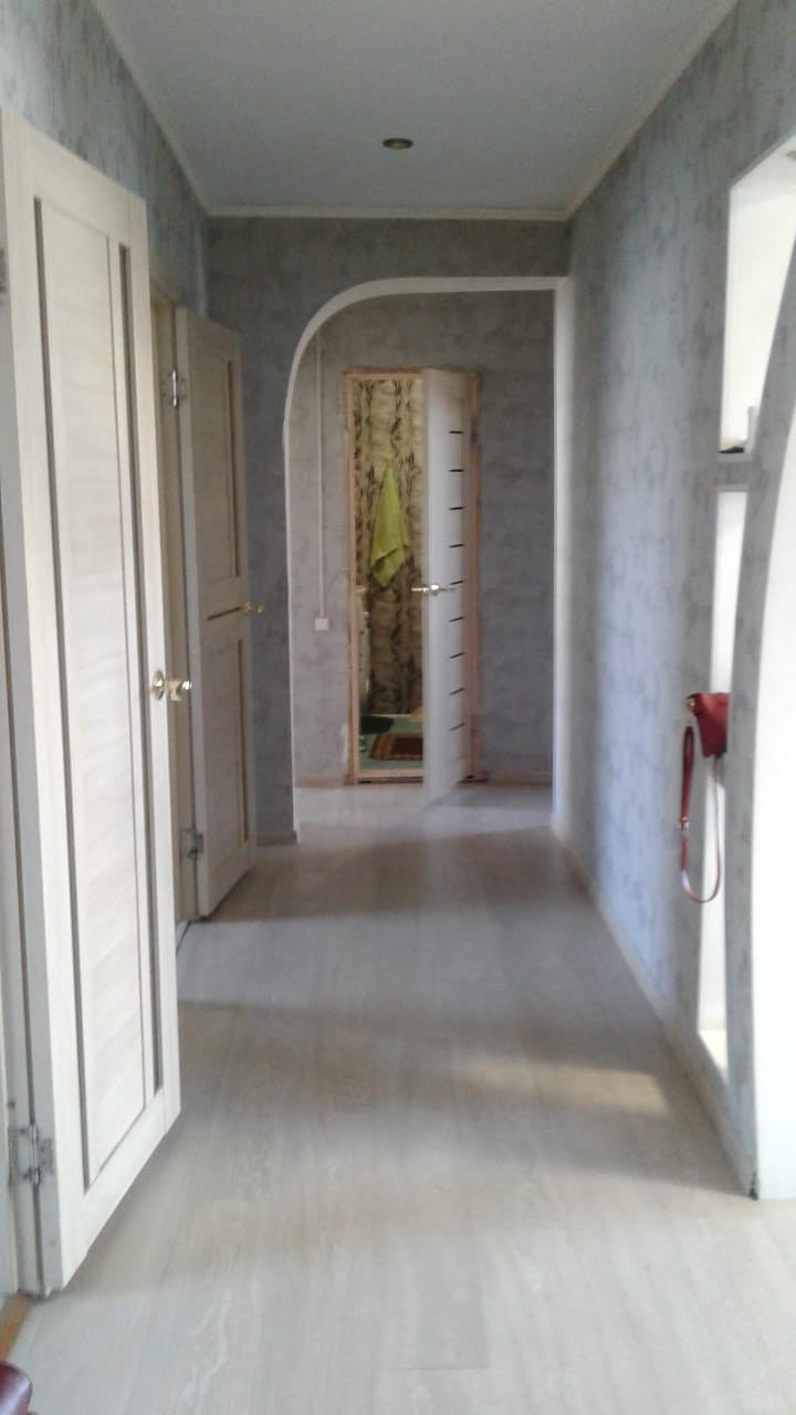 Квартира в очень хорошем состоянии: окна - стеклопакеты, пол - ламинат и линолеум, стены - выровнены, поклеены обои.