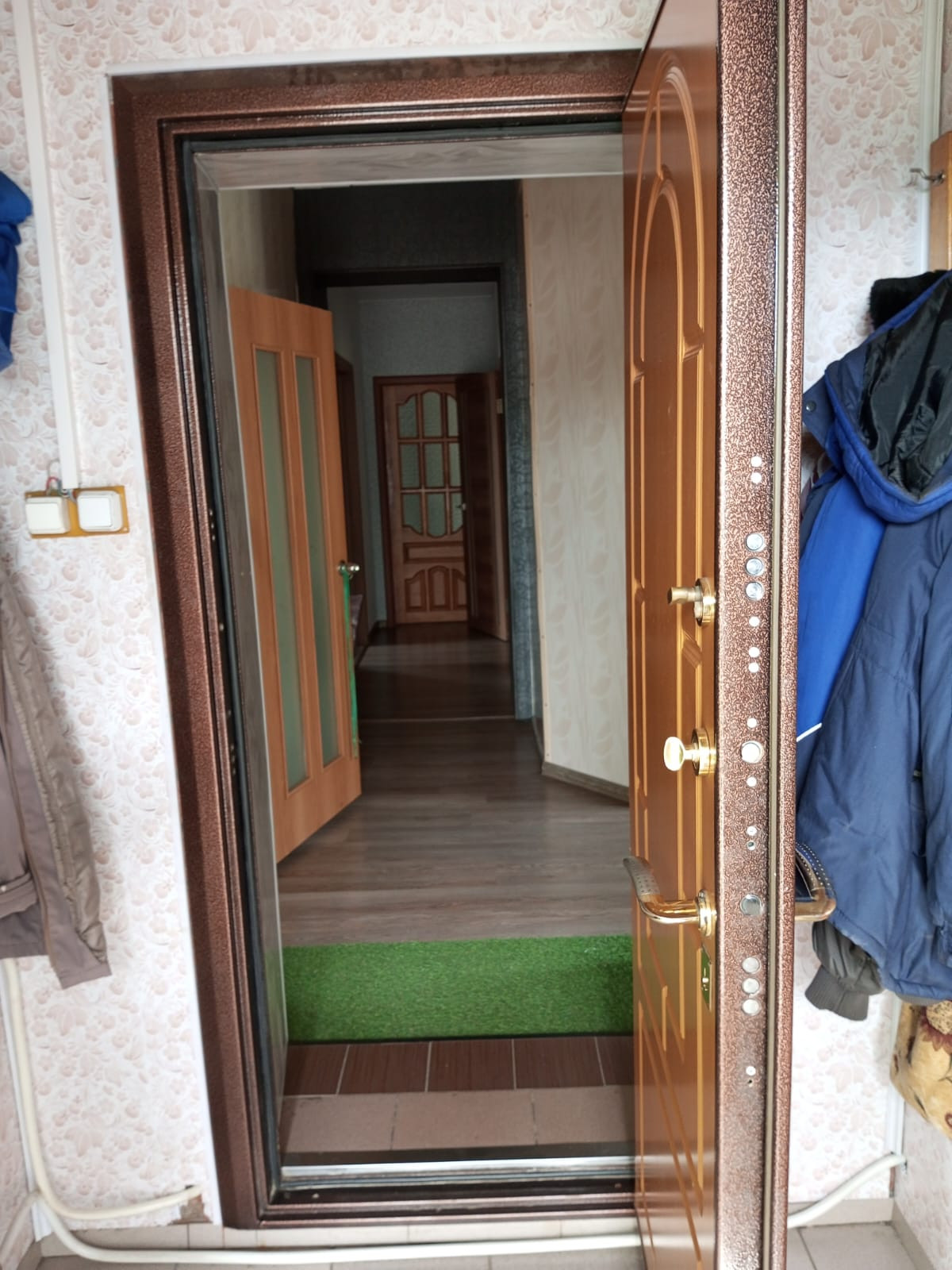 -Жилая -24,2, Жилая- 12,5. Жилая -8,6. Сам узел-3,9, Коридор-3,6, Коридор-12,1, Кухня-12,1. В подарок остается кухонный гарнитур.
