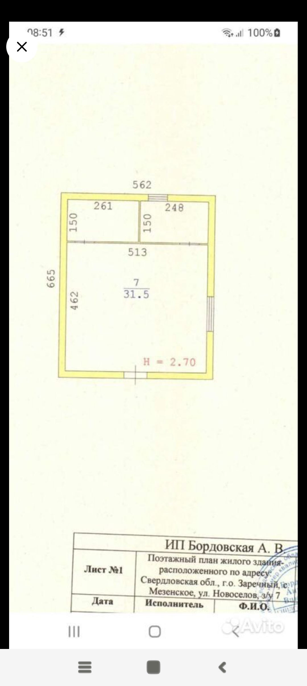 1-этажный дом, 31.5 м2, на продажу в селе Мезенском, улица Новосёлов