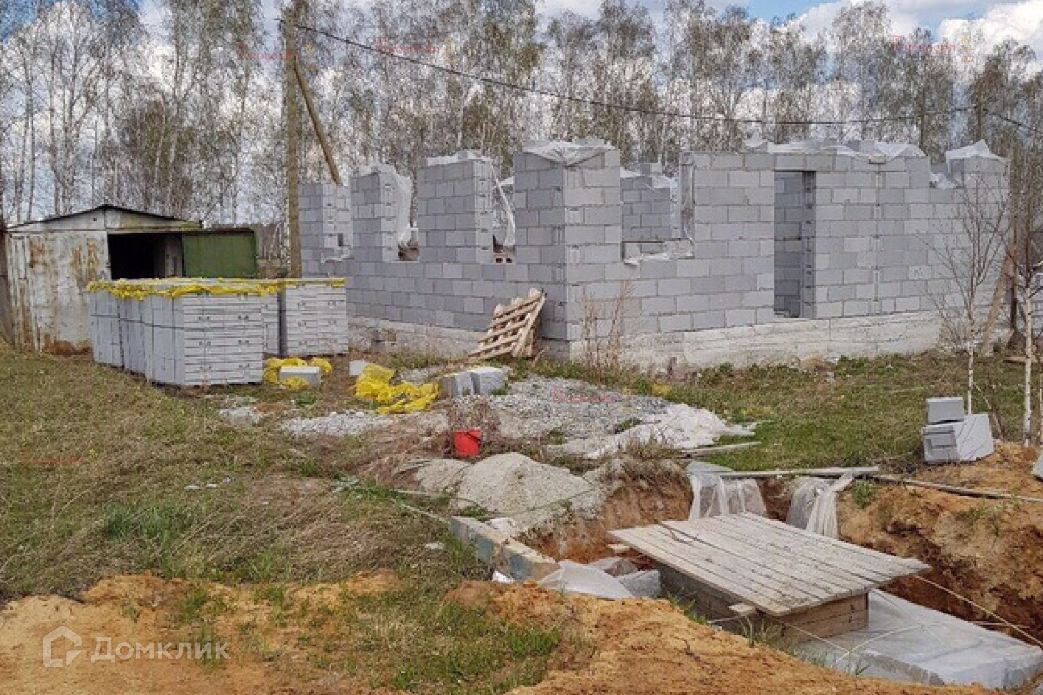 Объект № 171505. Продам земельный участок г.Заречный,село Мезенское, ул. Клубничная, 29.На частке есть недостроенный дом с эркером (твинблок). Фундамент лента 2,5 м глубина, 70 см ширина + плита 30 см с армированием. есть еще гараж 9*5, фундамент монолит. недострой. Гараж 6*3 металлический. Участок ровный. Сважина 50м. В шаговой доступности находится: школа, детский сад, ж/д станция