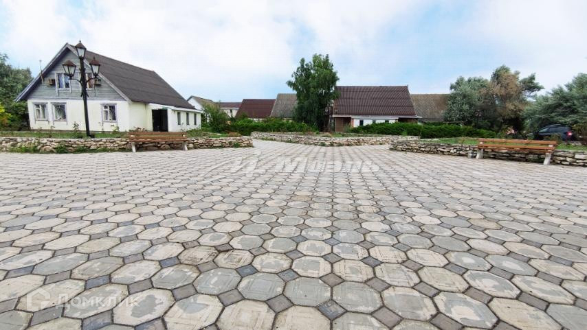 Придомовая территория закрытая, выложена брусчаткой, огорожена забором: зеленая, уютная.