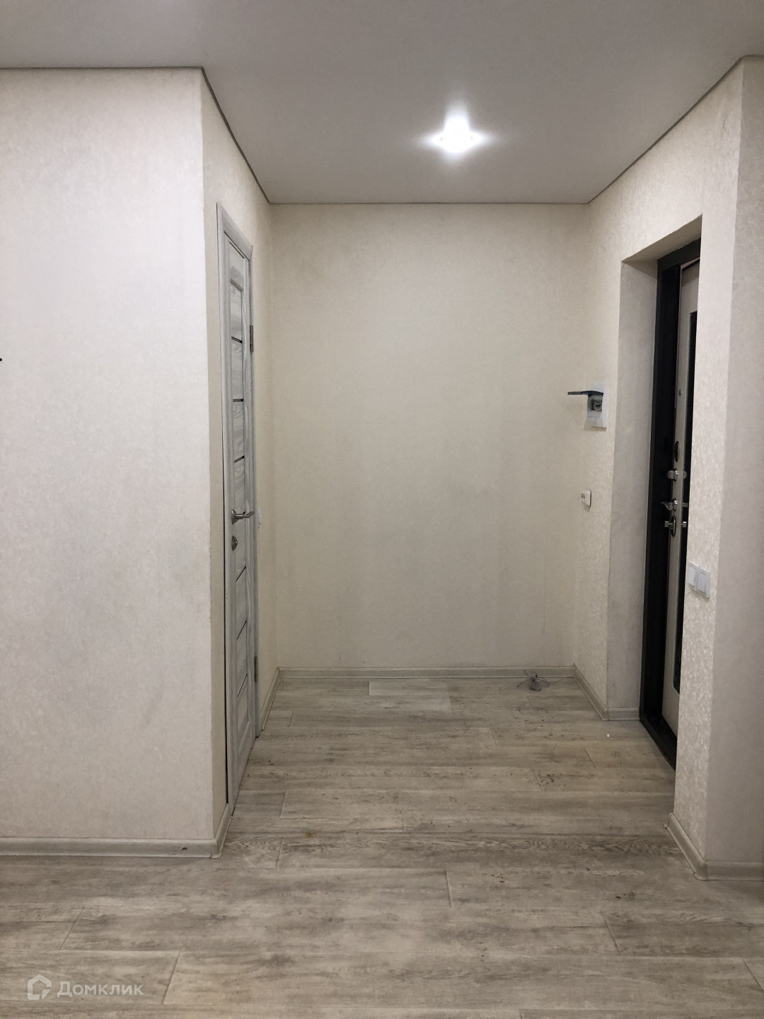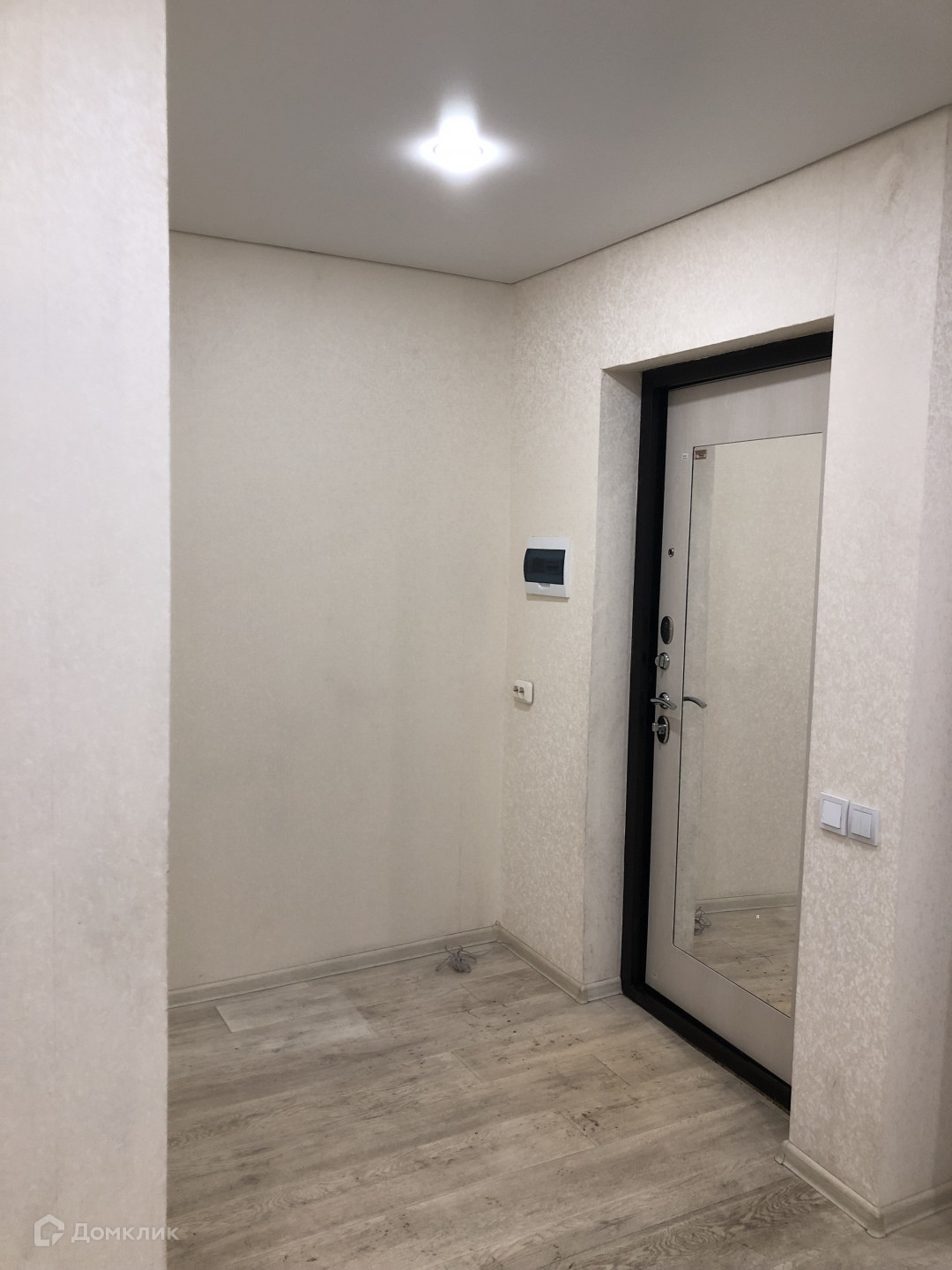 Установлена современная входная дверь с зеркалом.