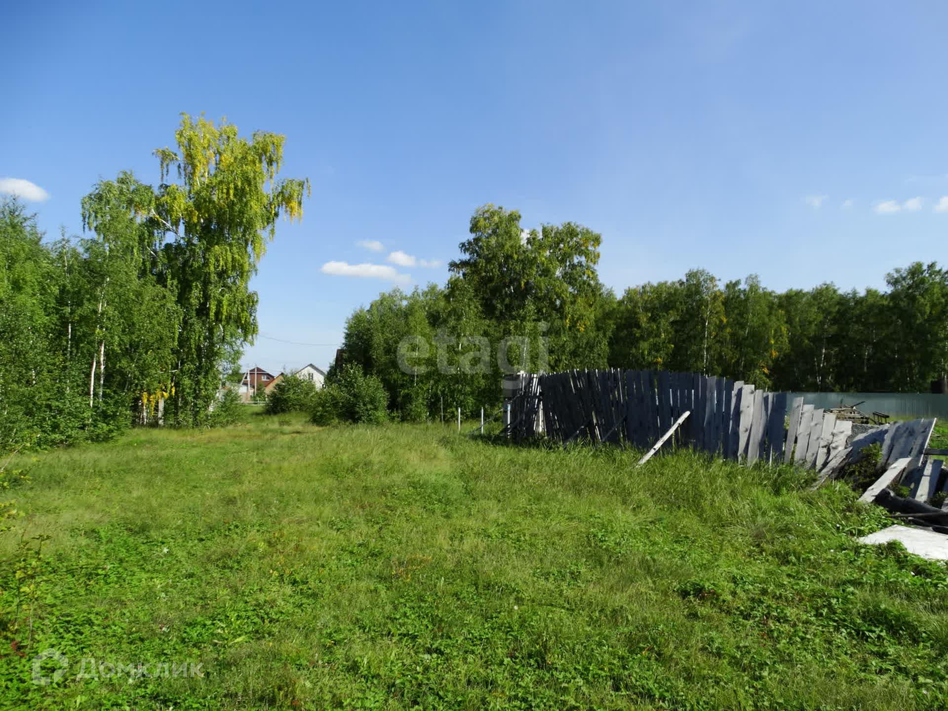 Улица населенная, рядом соседи, строящиеся коттеджи. Участок правильной формы, в окружении берёз. С двух сторон - дороги, которые планируют отсыпать. С одной стороны - капитальный забор из профлиста.