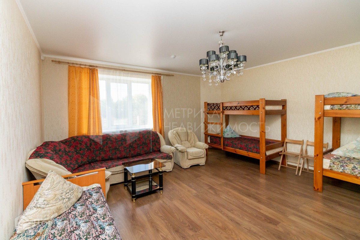 Продается коттедж в с.Мичурино рядом с Тюменским Областным центром зимних видиом спорта «Жемчужина Сибири». Шикарное месторасположение объекта - в шаговой доступности Жемчужина Сибири, рядом речка, вся необходима инфраструктура для жизни рядом. Коттедж может использоваться для размещения спортсменов, все оборудовано для комфортного проживания. В доме 25 спальных мест, две кухни столовой, 5 санузлов, отдельно стоящая баня, гараж. При продаже остается вся мебель и техника. В здании 2 этажа и полноценный цоколь. Дом  теплый, функциональный, построен из качественных материалов! Отличный вариант как для большой семьи, так и для сдачи в аренду! Звоните, расскажу подробнее и покажу в удобное время.  Номер объекта: 1295202