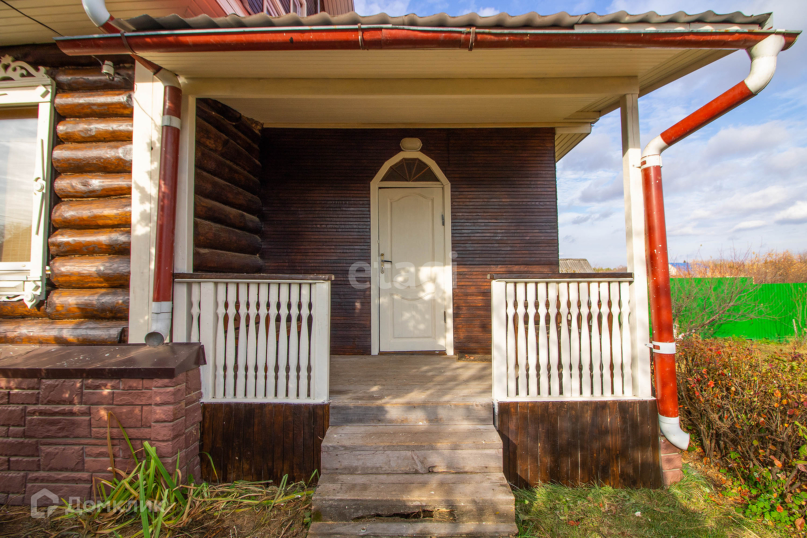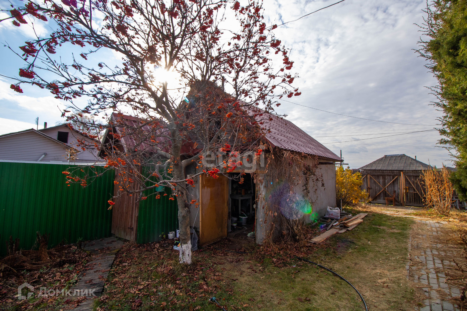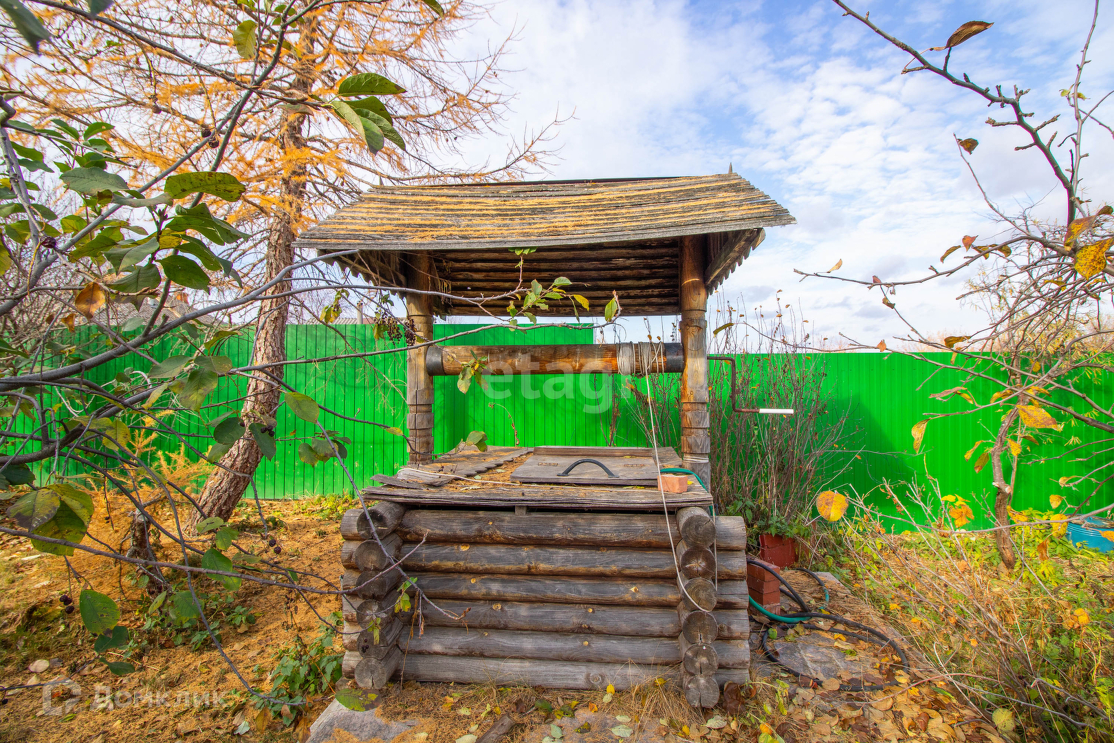 Участок ухоженный, плодовые и декоративные деревья (груша, яблоня, абрикос), кустарники (смородина, малина, жимолость), газон.