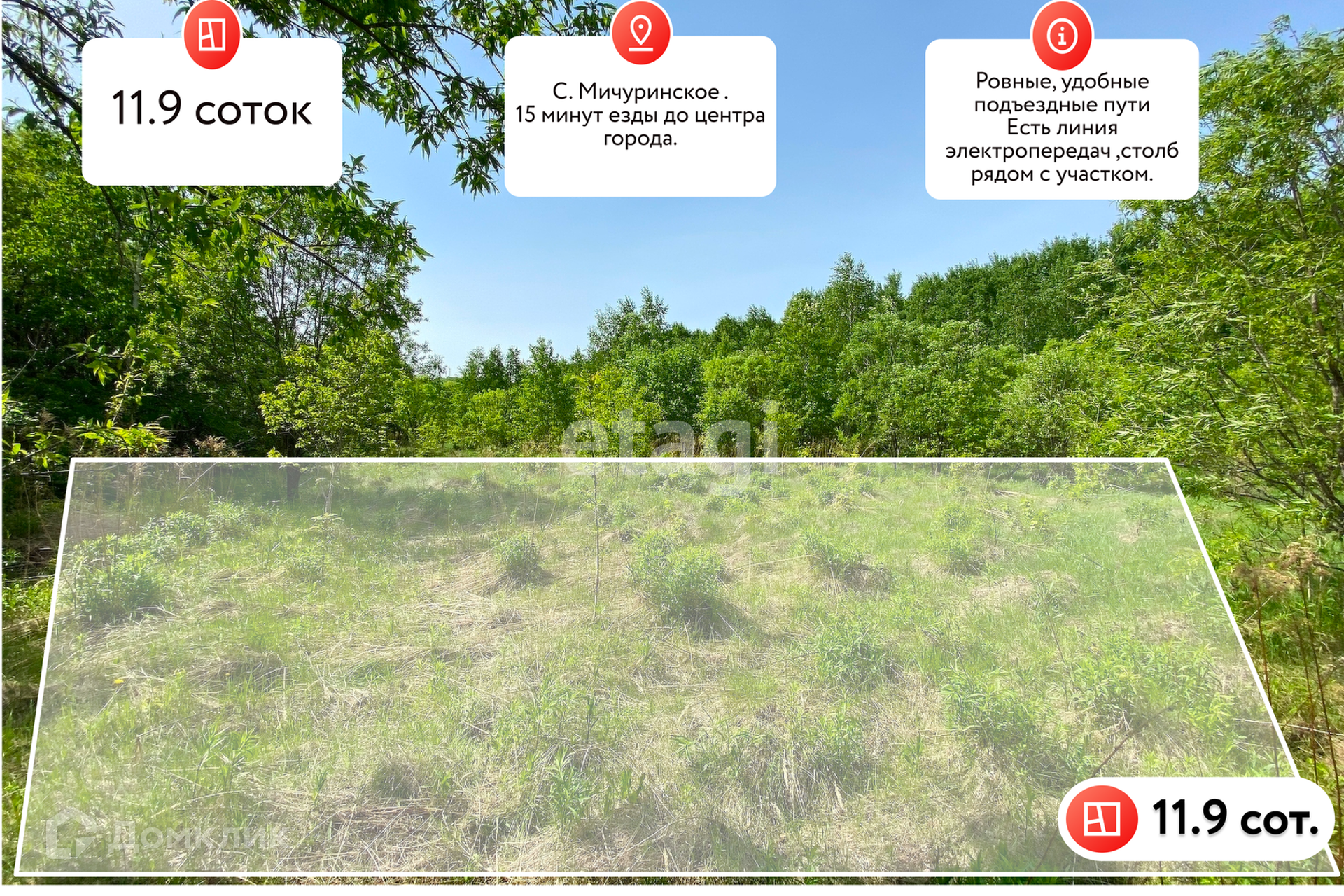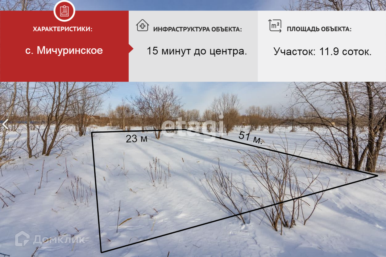 Участок под ИЖС, 11.9 сот. на продажу в селе Мичуринском, Центральная улица