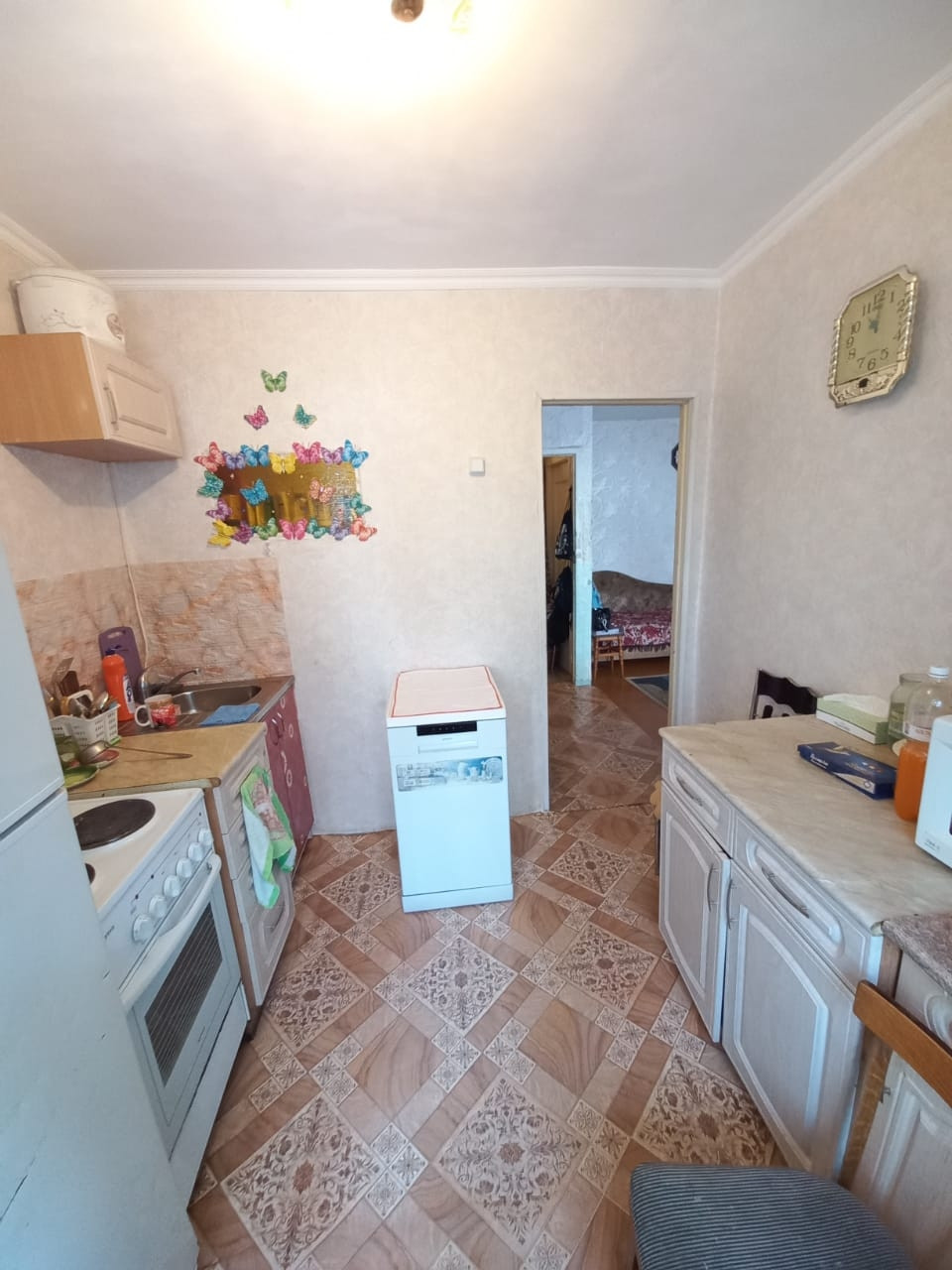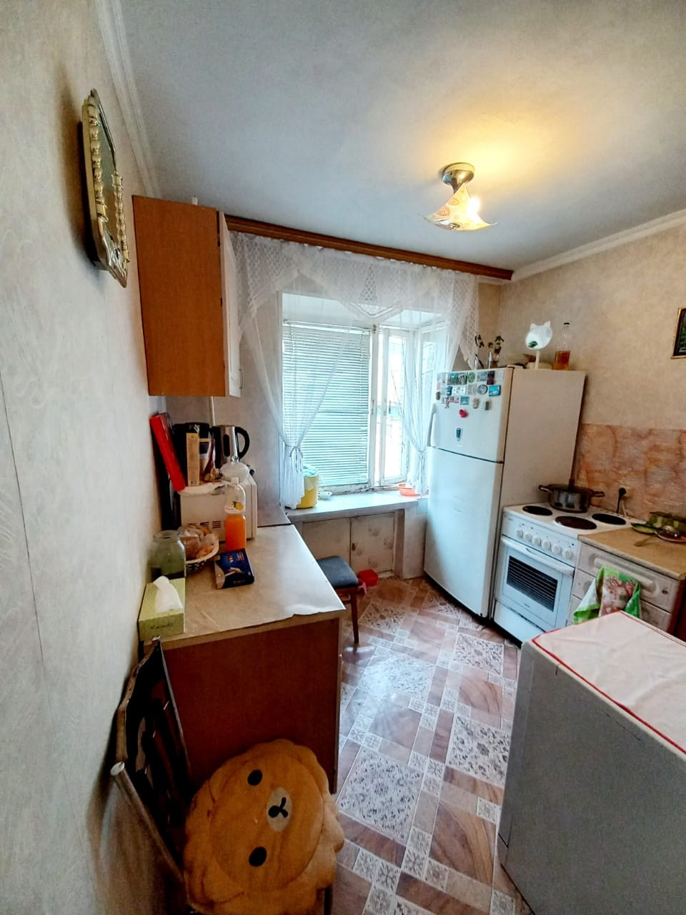 * В квартире косметический ремонт, чисто, уютно. На полу Линолеум, потолок отделан декоративной плиткой, двойная входная дверь.