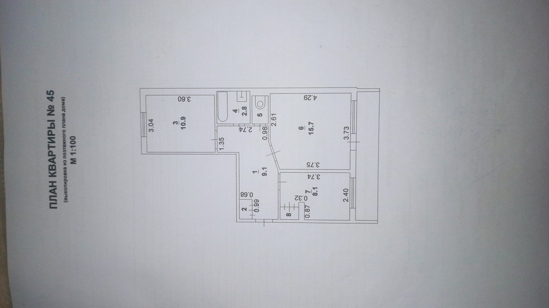 Жилая площадь 49.1 м2
