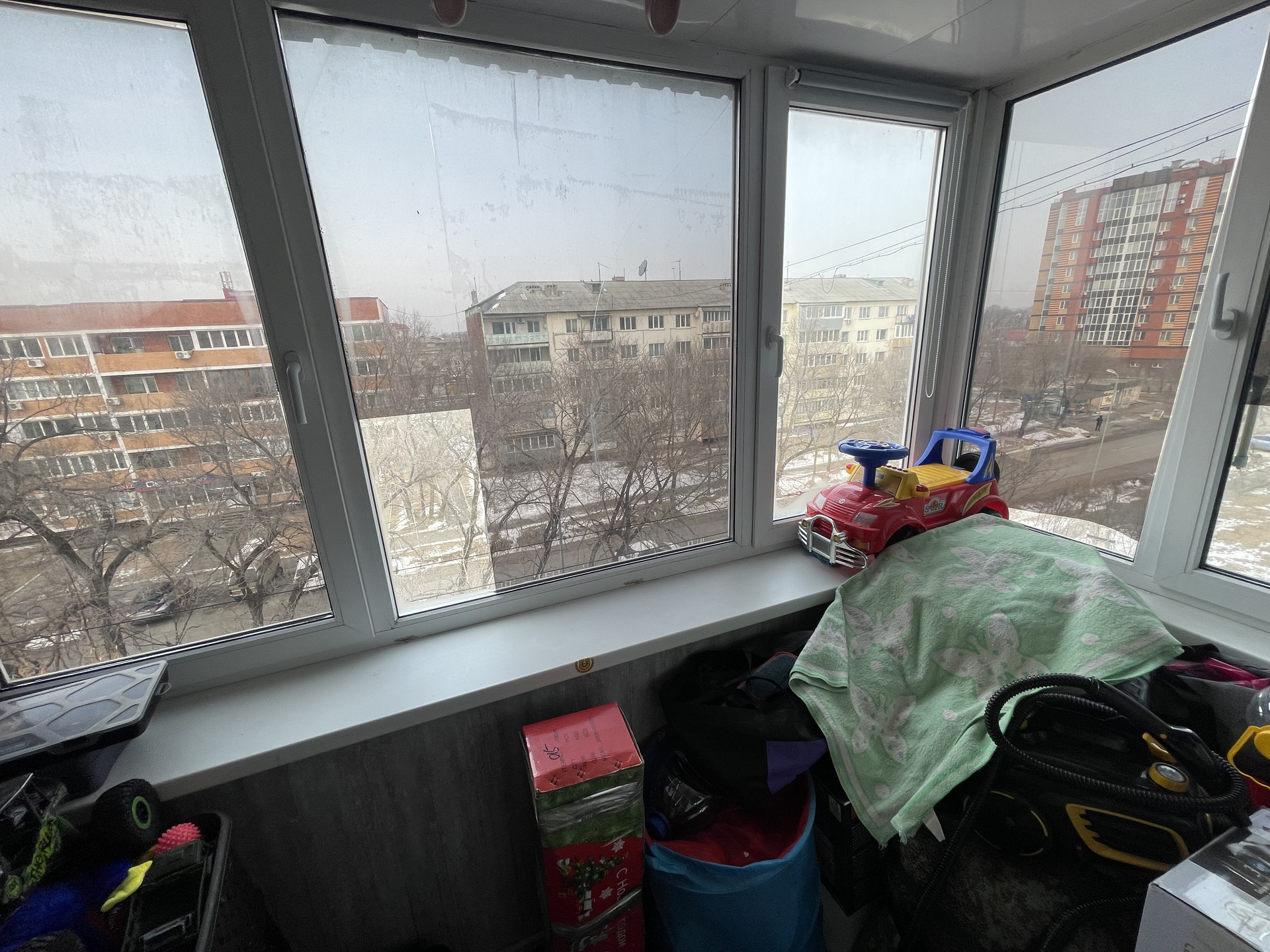 Застекленный просторный балкон.